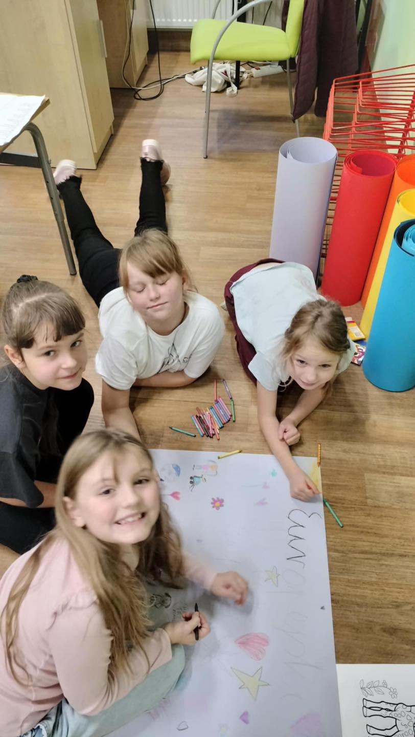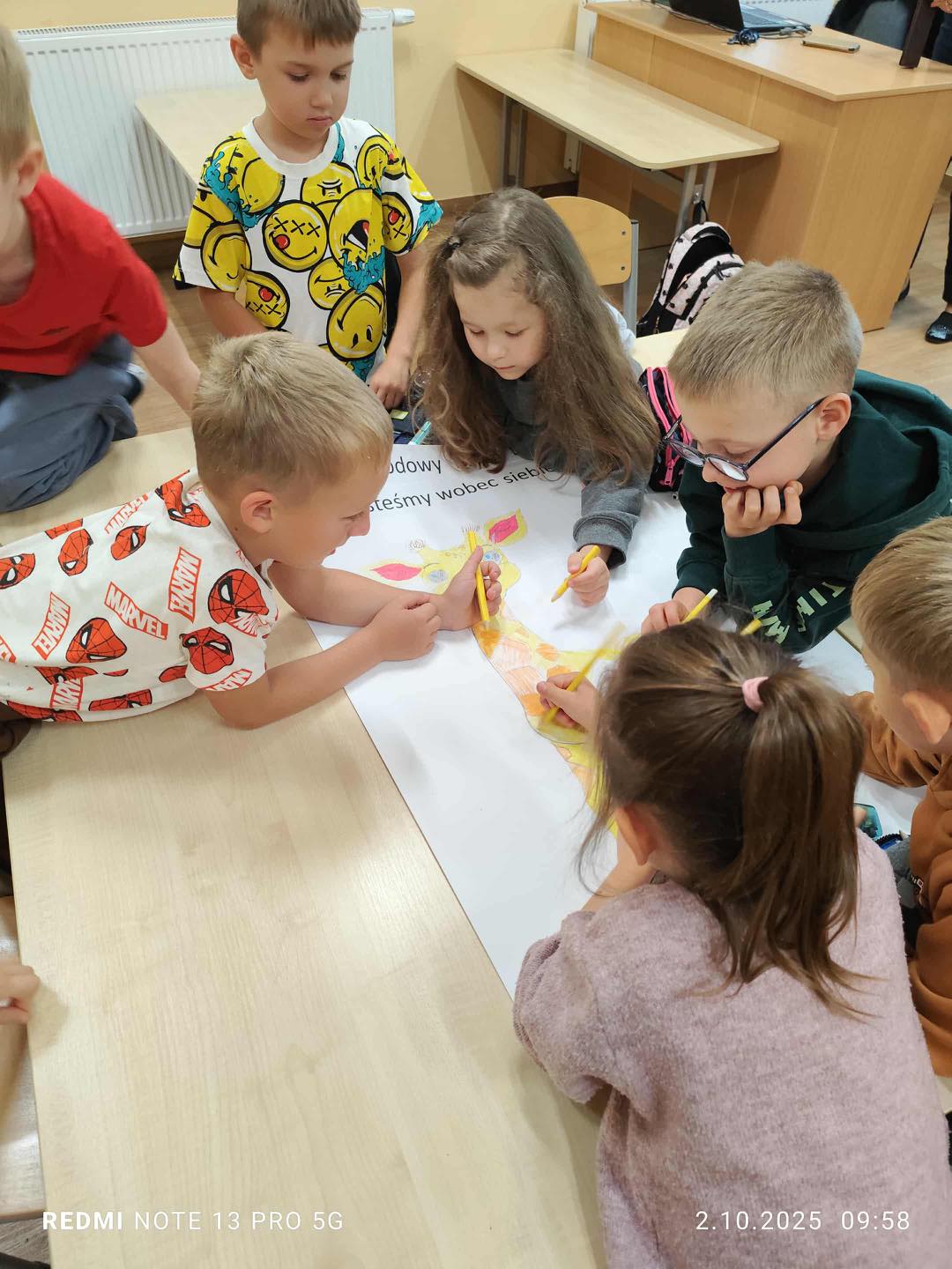 Dzieci z zaciekawieniem ogladały bajkę o empatii, która wprowadziła je w temat zajęć. Następnie rozmawiały o tym, czym jest umiejętność współodczuwania i wykonały piękne plakaty.