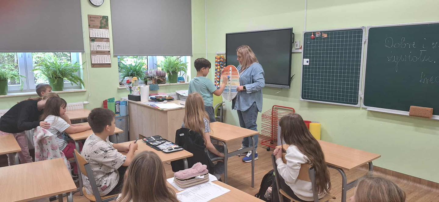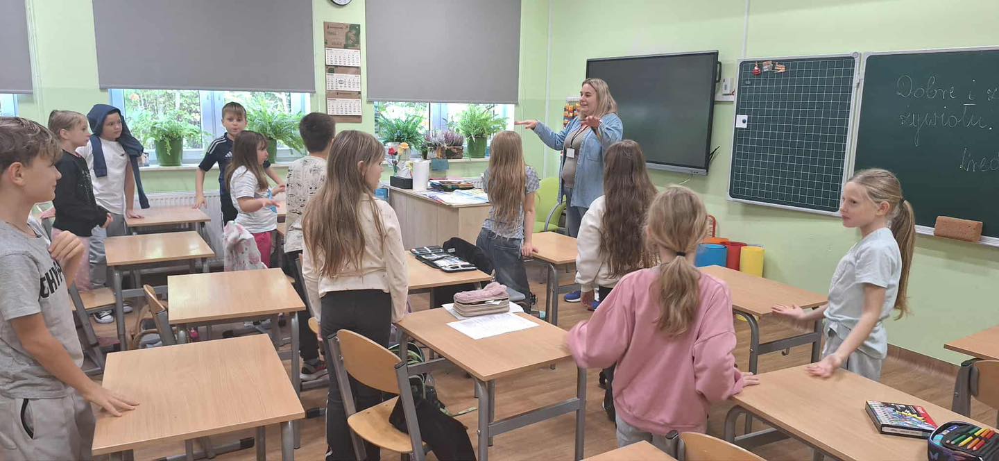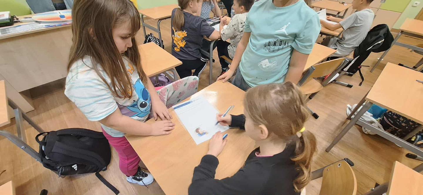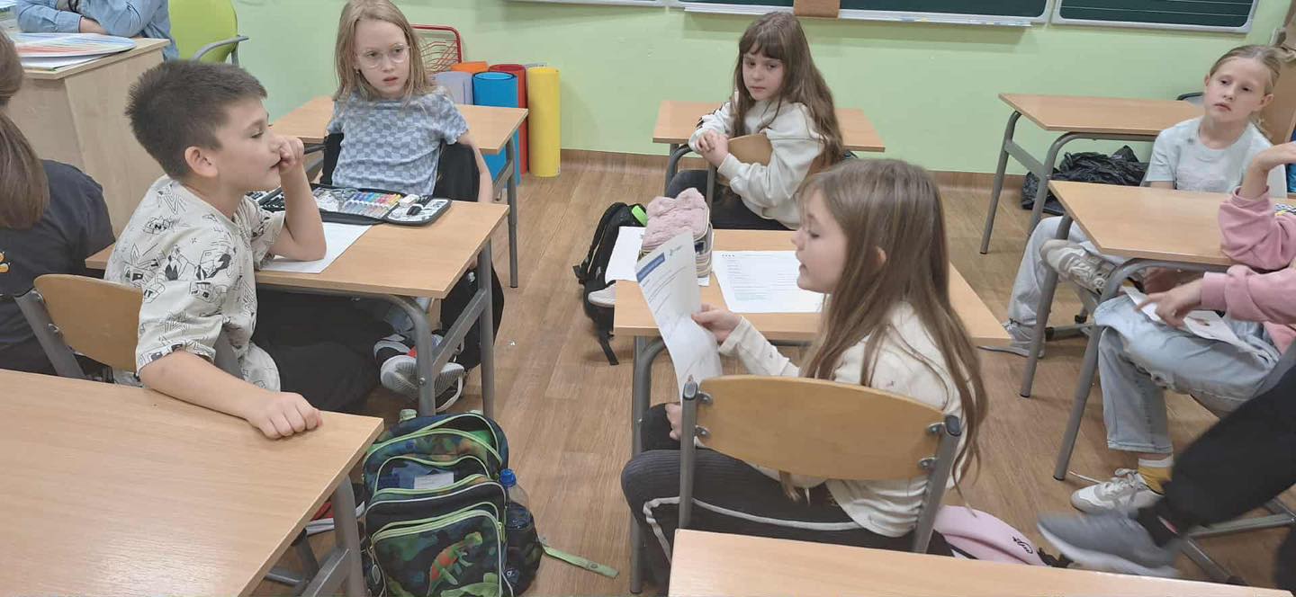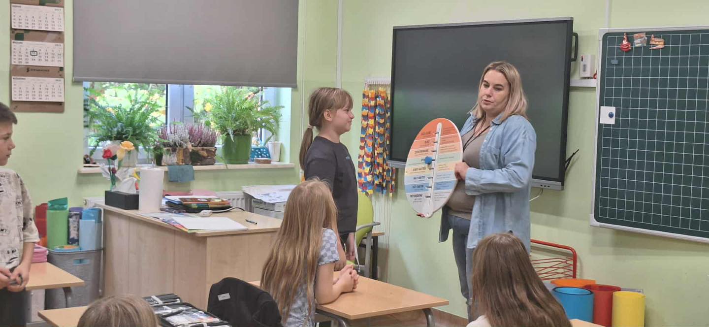 W dniu 08.10.2025 roku w klasie 3 odbyły się zajęcia z cyklu „Moc relacji - siła bez przemocy”. Jest to projekt , który łączy elementy edukacji emocjonalno-społecznej, profilaktyki przemocy rówieśniczej oraz działań wzmacniających zdrowie psychiczne uczniów. Zawiera twórcze metody dydaktyczne, aktywności sensoryczne, działania oparte na metaforze i symbolice, a także angażujące formy ekspresji uczniowskiej. Podczas zajęć do wskazania danej emocji ucznia, pani pedagog - Wioleta Karabin, przyniosła specjalny „Emocjomierz”, który służy do wskazywania, jakie emocje w danej chwili odczuwamy, określania ich siły oraz podpowiadania, jak obniżyć ich natężenie. Poprzez przesunięcie wskaźnika dziecko sygnalizuje, jaki ma nastrój, a następnie „odczytuje”, co może zrobić, by zmniejszyć swój smutek lub złość. Korzystanie z pomocy ułatwia podjęcie rozmowy na temat nieprzyjemnych uczuć, pozwala uświadomić, że trudne emocje mijają oraz że mamy na nie wpływ. Dodatkowo uczniowie wysłuchali opowiadania o Tomku i jego emocjach, które musieli wskazać samodzielnie na podstawie wysłuchanego tekstu. Na koniec w zespole wykonali zadanie, w którym samodzielnie musieli przeczytać opisaną sytuację i wskazać, jak czuł się dany bohater.