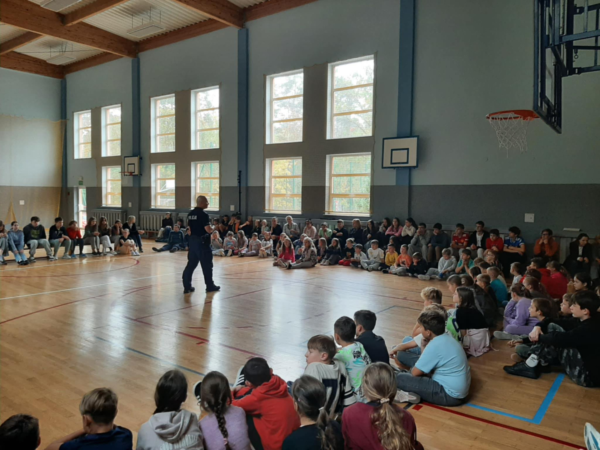 Bardzo dziękujemy panu dzielnicowemu Kamilowi Maciejko za spotkanie profilaktyczne, które odbyło się 9października w naszej szkole. Funkcjonariusz Policji rozmawiał z uczniami klas 1- 8 na temat zasad bezpieczeństwa: