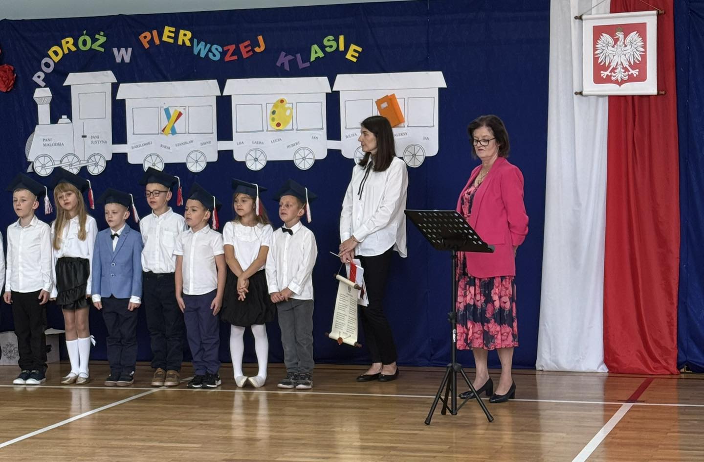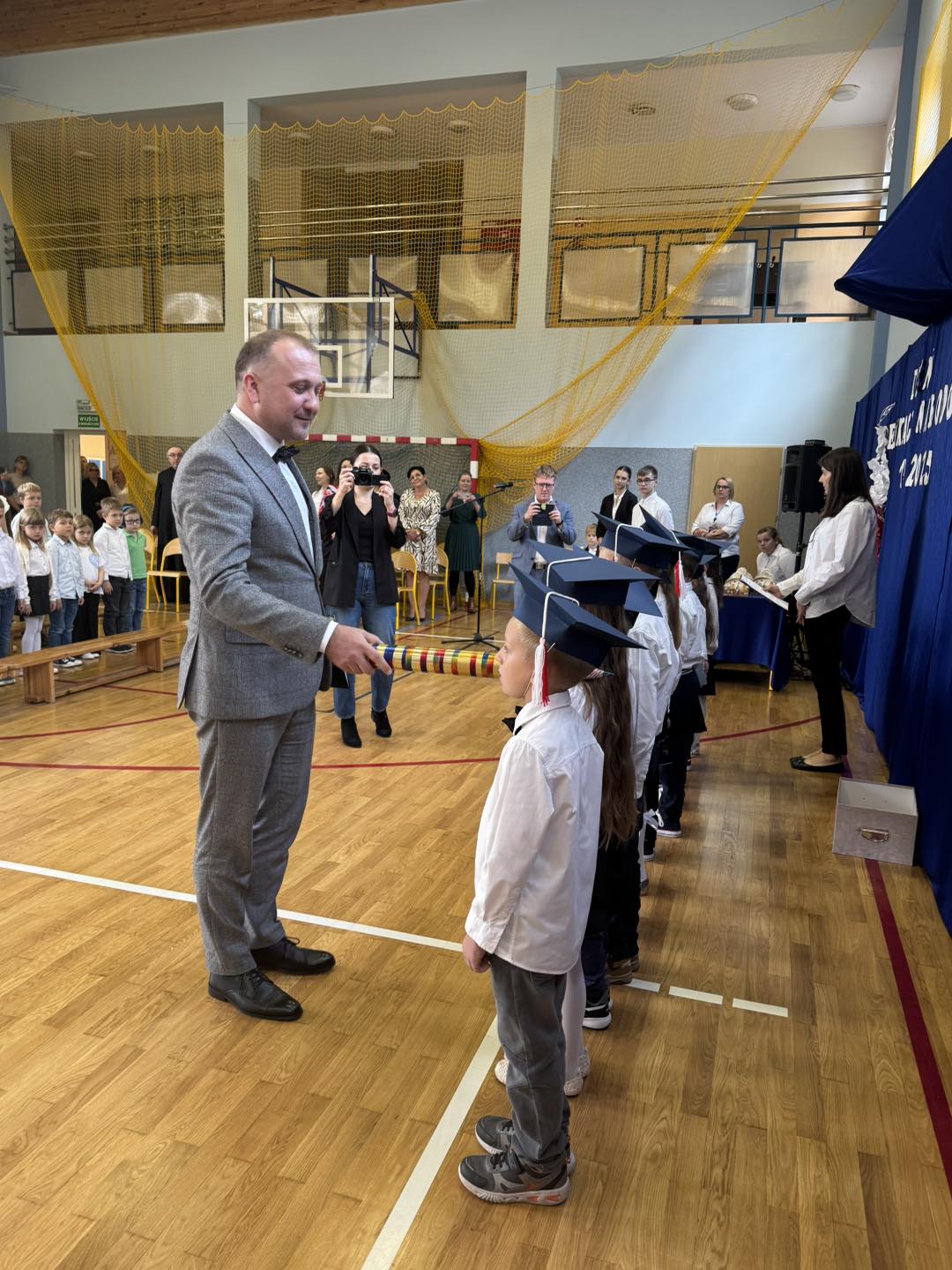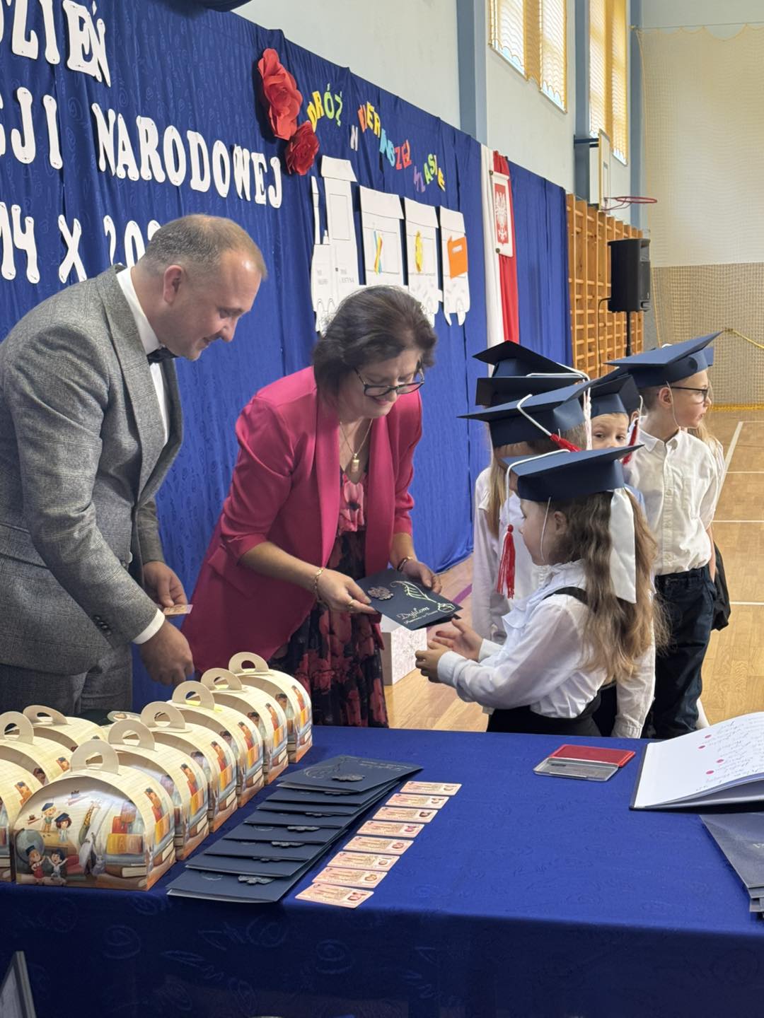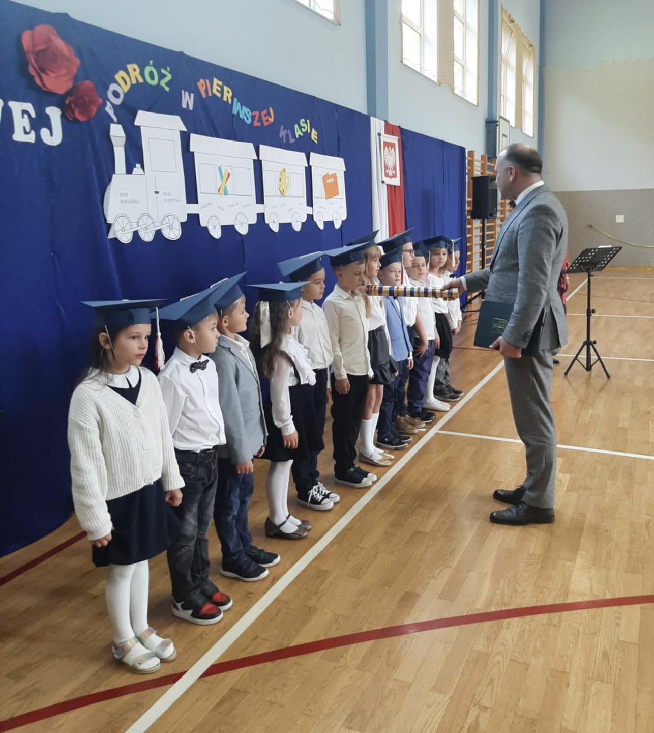 Na zakończenie uczniowie otrzymali pamiątkowe dyplomy, legitymacje szkolne oraz złożyli „podpis” odciskając swój wskazujący palec w kronice szkolnej, aby kolejne pokolenia miały możliwość zapoznania się z historią naszej szkoły. To był ważny i wzruszający dzień w szkolnym życiu każdego pierwszoklasisty