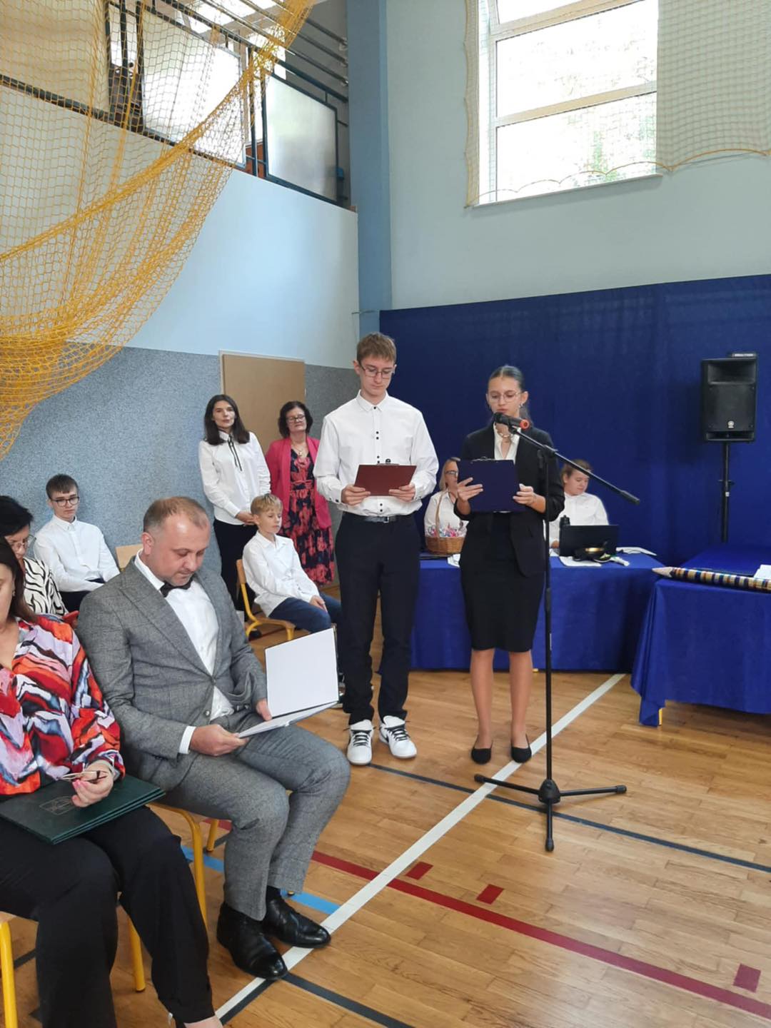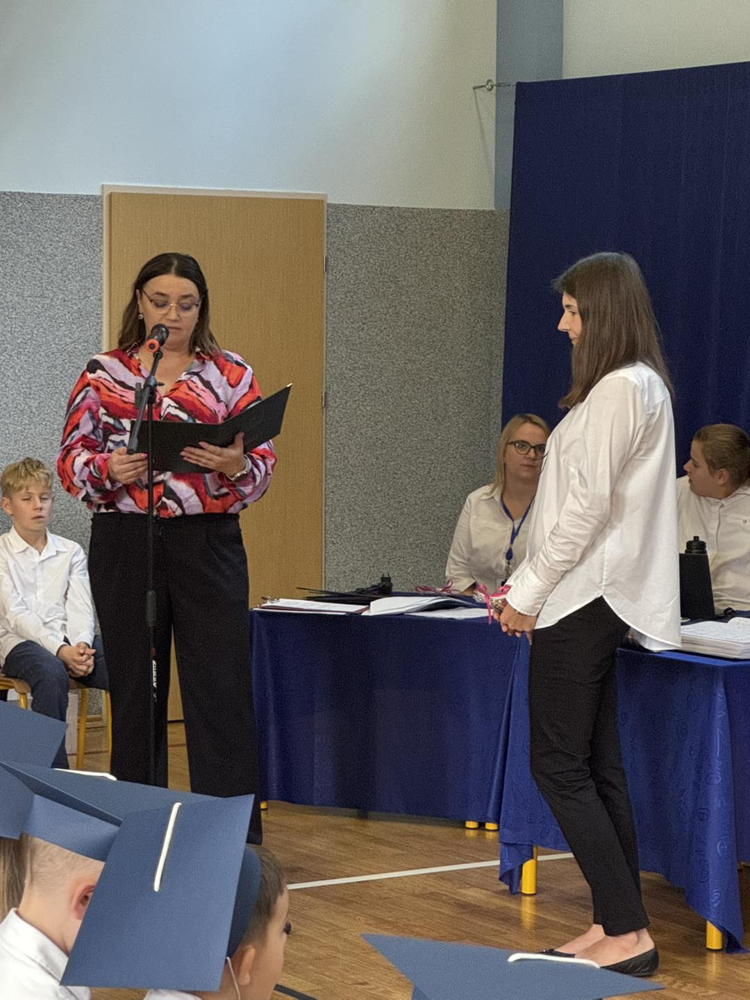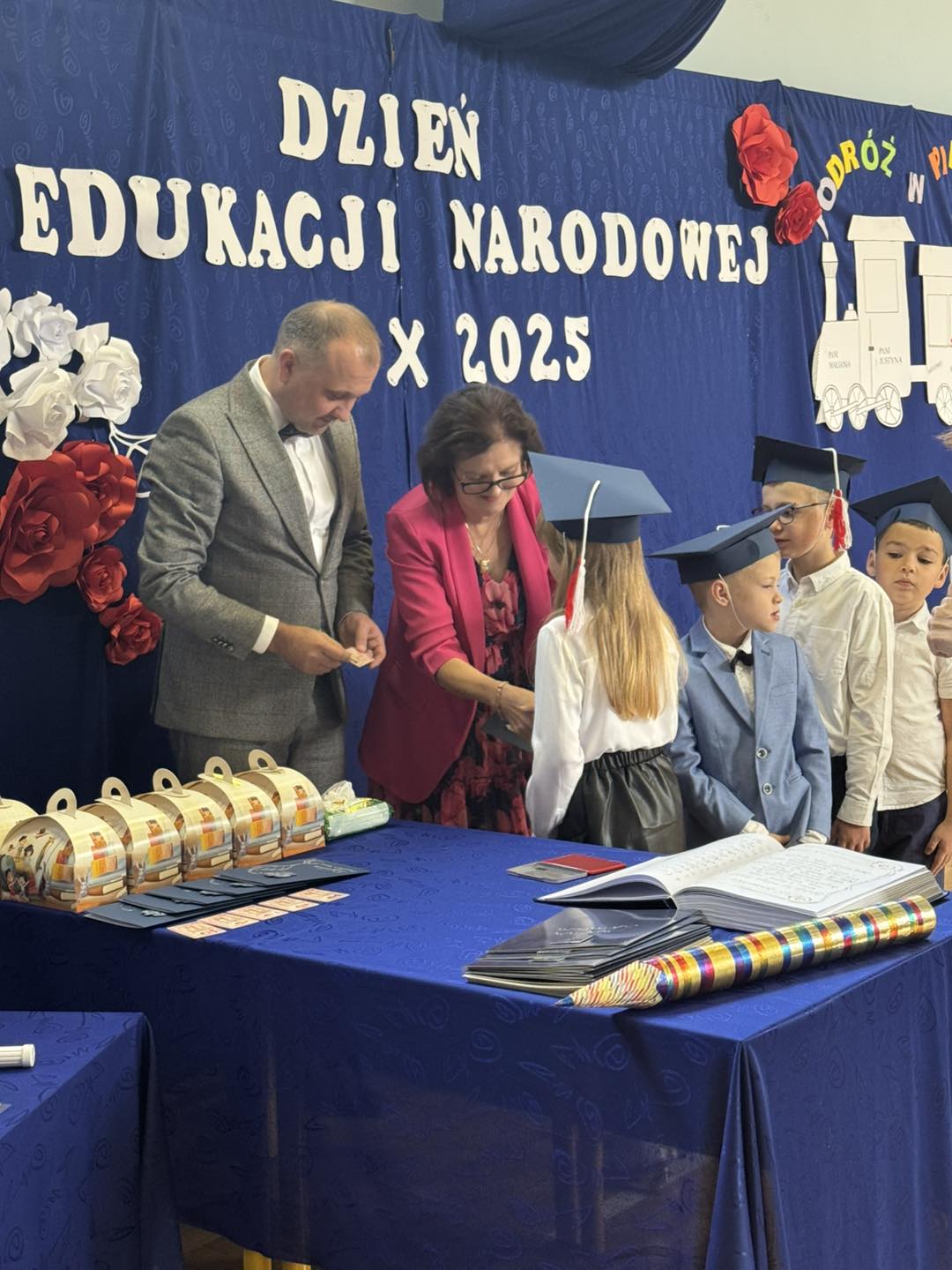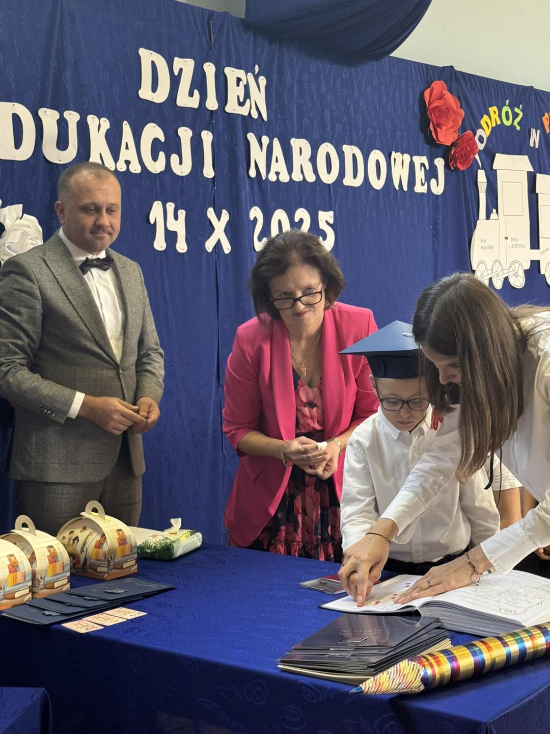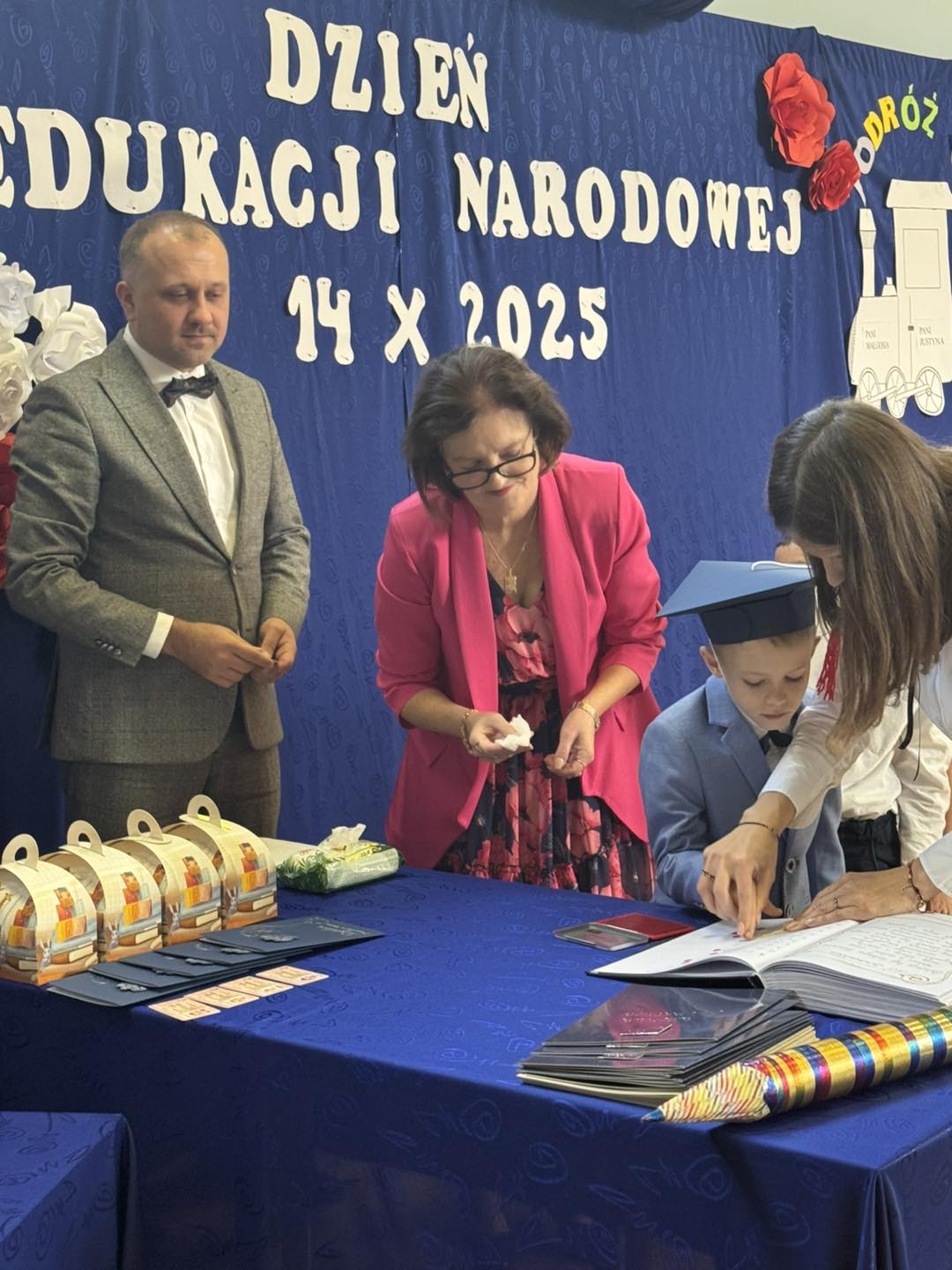 Na zakończenie uczniowie otrzymali pamiątkowe dyplomy, legitymacje szkolne oraz złożyli „podpis” odciskając swój wskazujący palec w kronice szkolnej, aby kolejne pokolenia miały możliwość zapoznania się z historią naszej szkoły. To był ważny i wzruszający dzień w szkolnym życiu każdego pierwszoklasisty