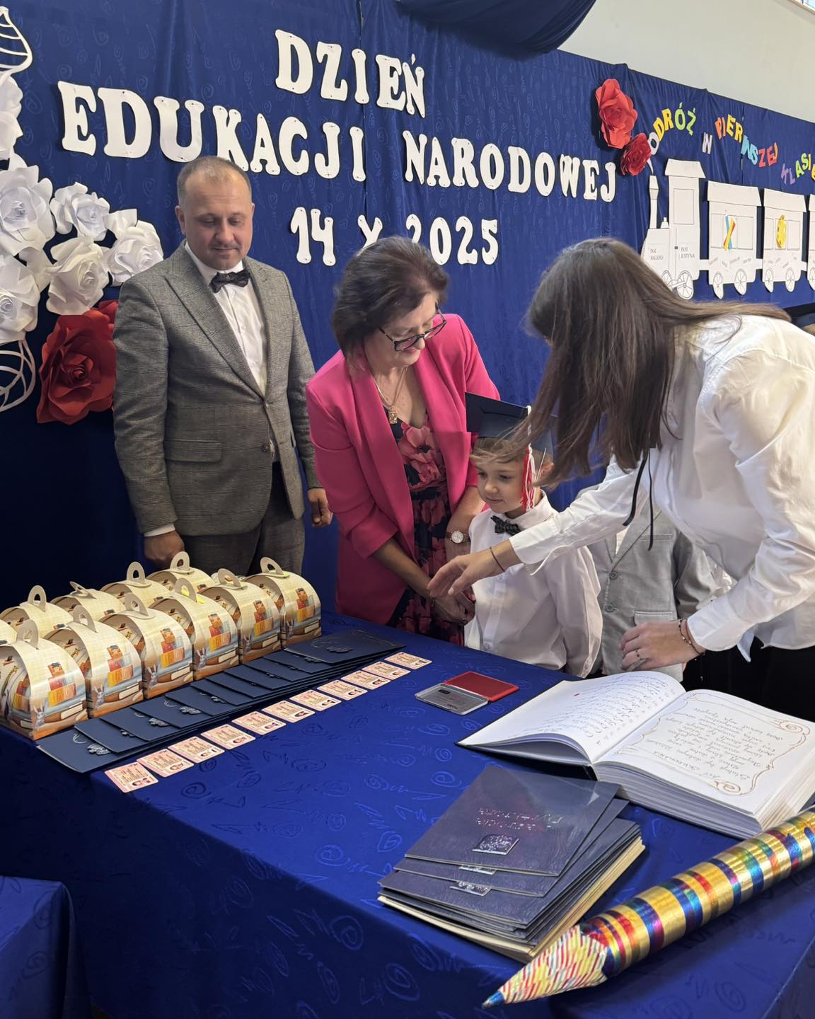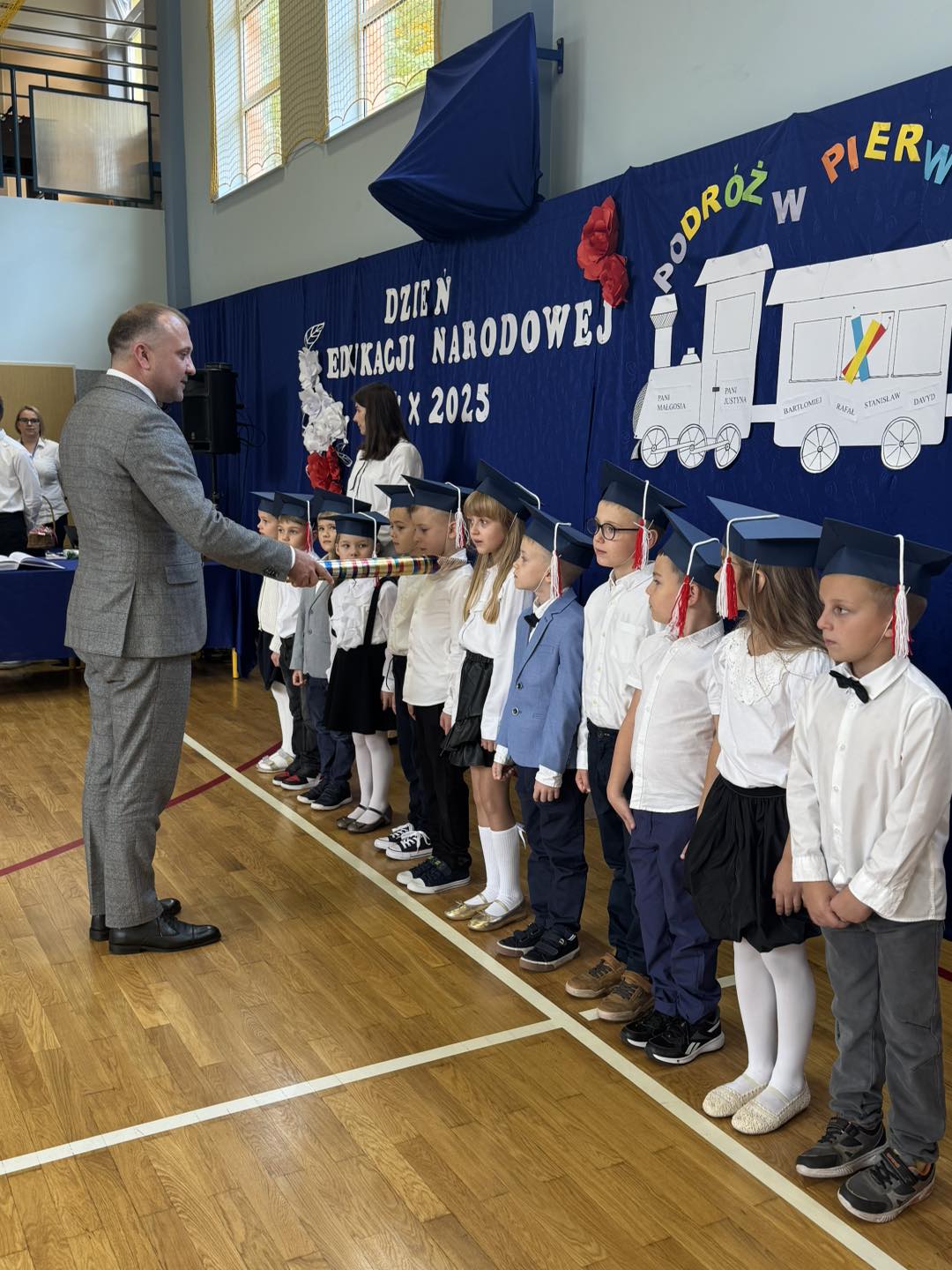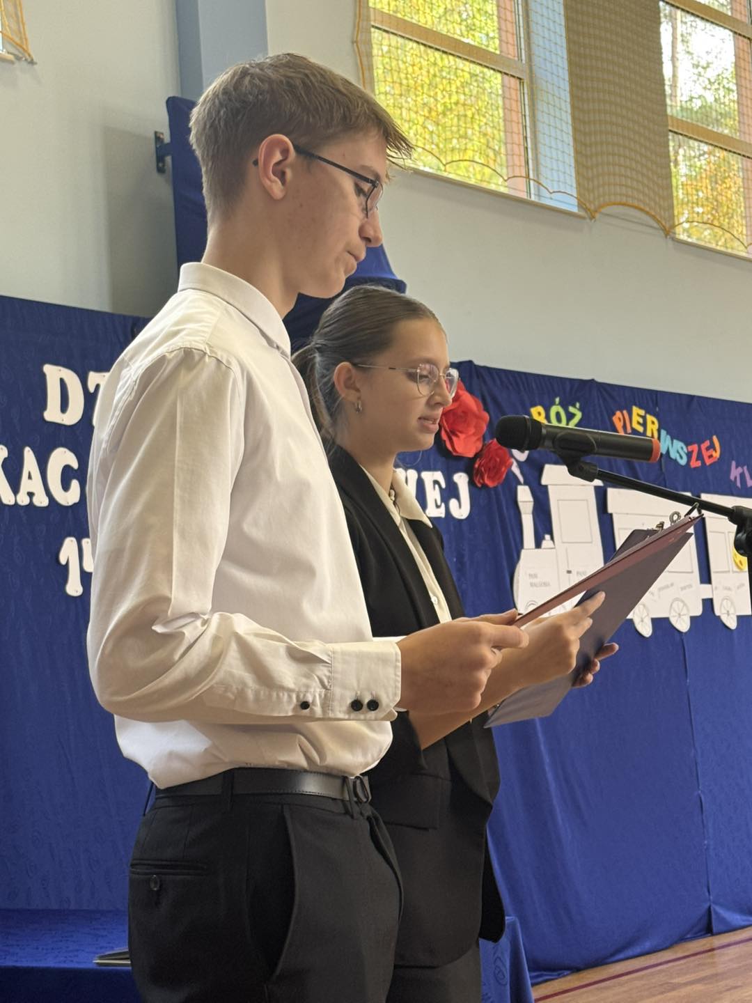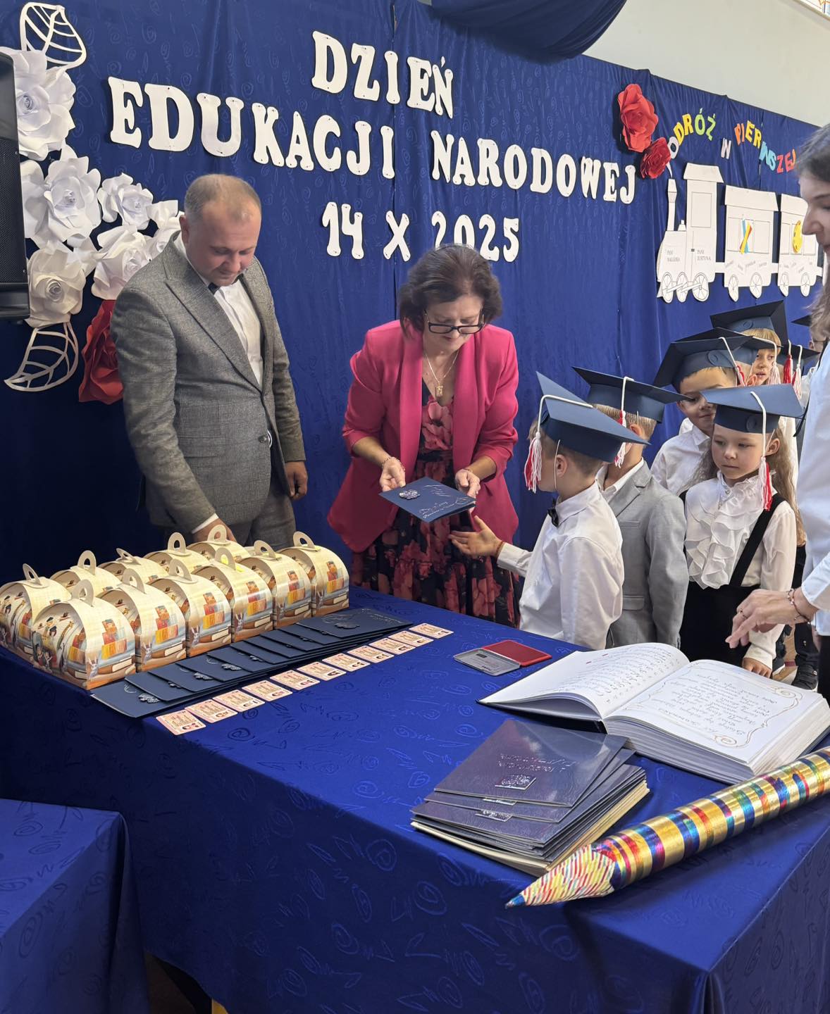 We wtorkowy poranek 14.10.2025r. obchodziliśmy uroczystość z okazji Dnia Edukacji Narodowej. Tradycją naszej szkoły w tym dniu jest ceremonia ślubowania uczniów klasy pierwszej. Uroczystość miała miejsce w sali gimnastycznej i zgromadziła wielu gości – rodziców, grono pedagogiczne, starszych kolegów oraz innych pracowników szkoły. Swoją obecnością zaszczycili nas również: Pani Magdalena Kamińska – zastępca Pani Wójt Gminy Czosnów, Pan Artur Abramczyk – Wiceprzewodniczący Rady Gminy Czosnów, ksiądz proboszcz parafii w Cząstkowie Mazowieckim – Adam Bednarek oraz Pani Kinga Kościkiewicz – Przewodnicząca Rady Rodziców.
