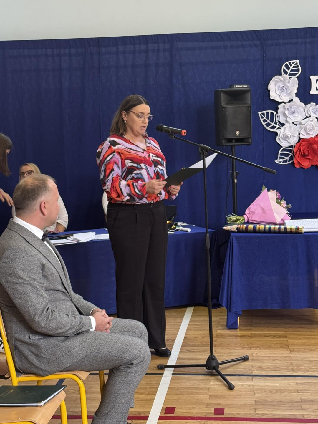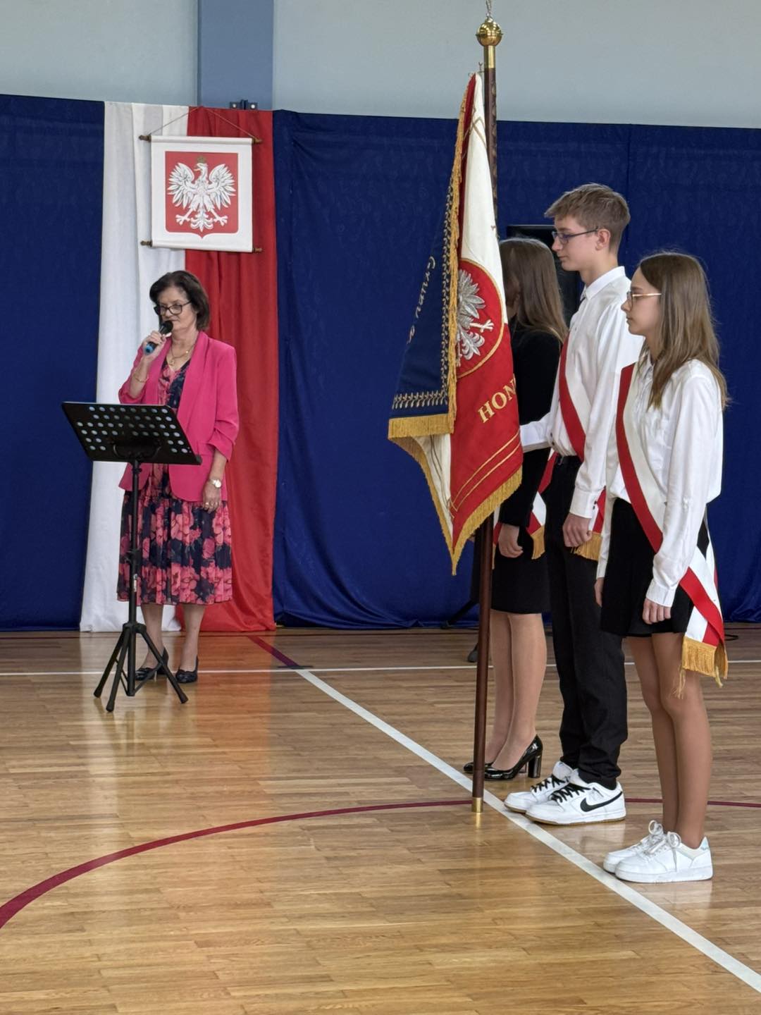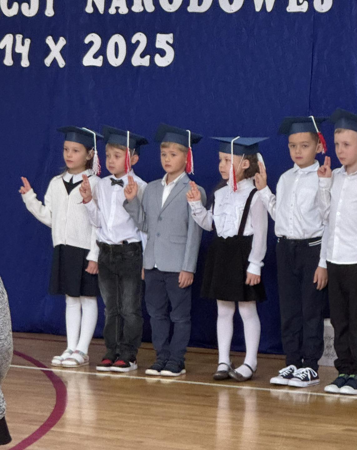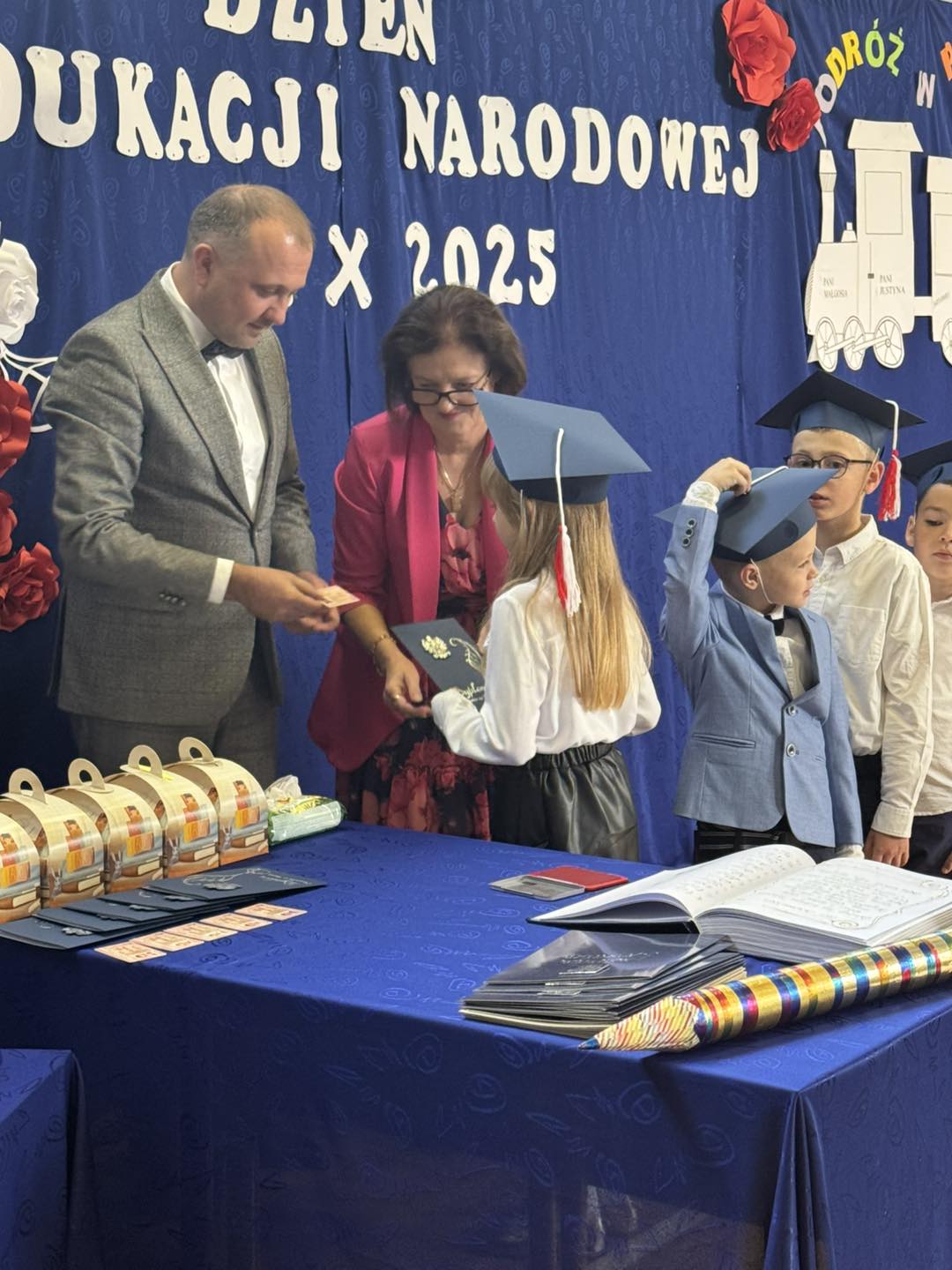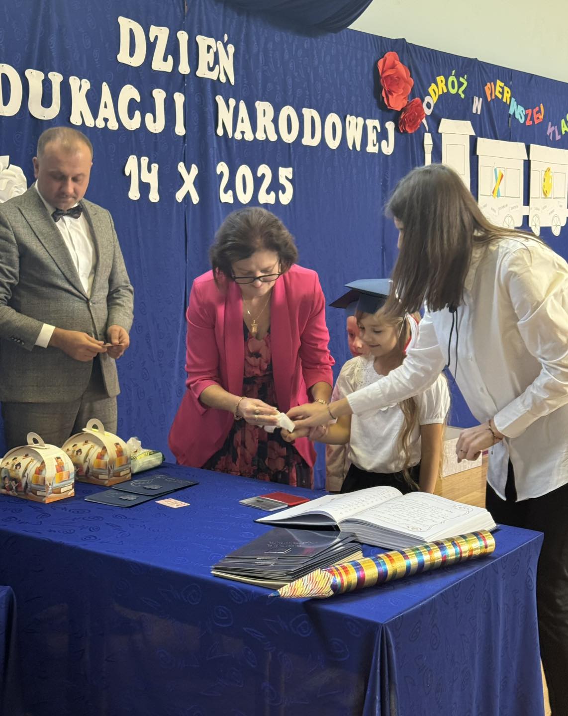 We wtorkowy poranek 14.10.2025r. obchodziliśmy uroczystość z okazji Dnia Edukacji Narodowej. Tradycją naszej szkoły w tym dniu jest ceremonia ślubowania uczniów klasy pierwszej. Uroczystość miała miejsce w sali gimnastycznej i zgromadziła wielu gości – rodziców, grono pedagogiczne, starszych kolegów oraz innych pracowników szkoły. Swoją obecnością zaszczycili nas również: Pani Magdalena Kamińska – zastępca Pani Wójt Gminy Czosnów, Pan Artur Abramczyk – Wiceprzewodniczący Rady Gminy Czosnów, ksiądz proboszcz parafii w Cząstkowie Mazowieckim – Adam Bednarek oraz Pani Kinga Kościkiewicz – Przewodnicząca Rady Rodziców.