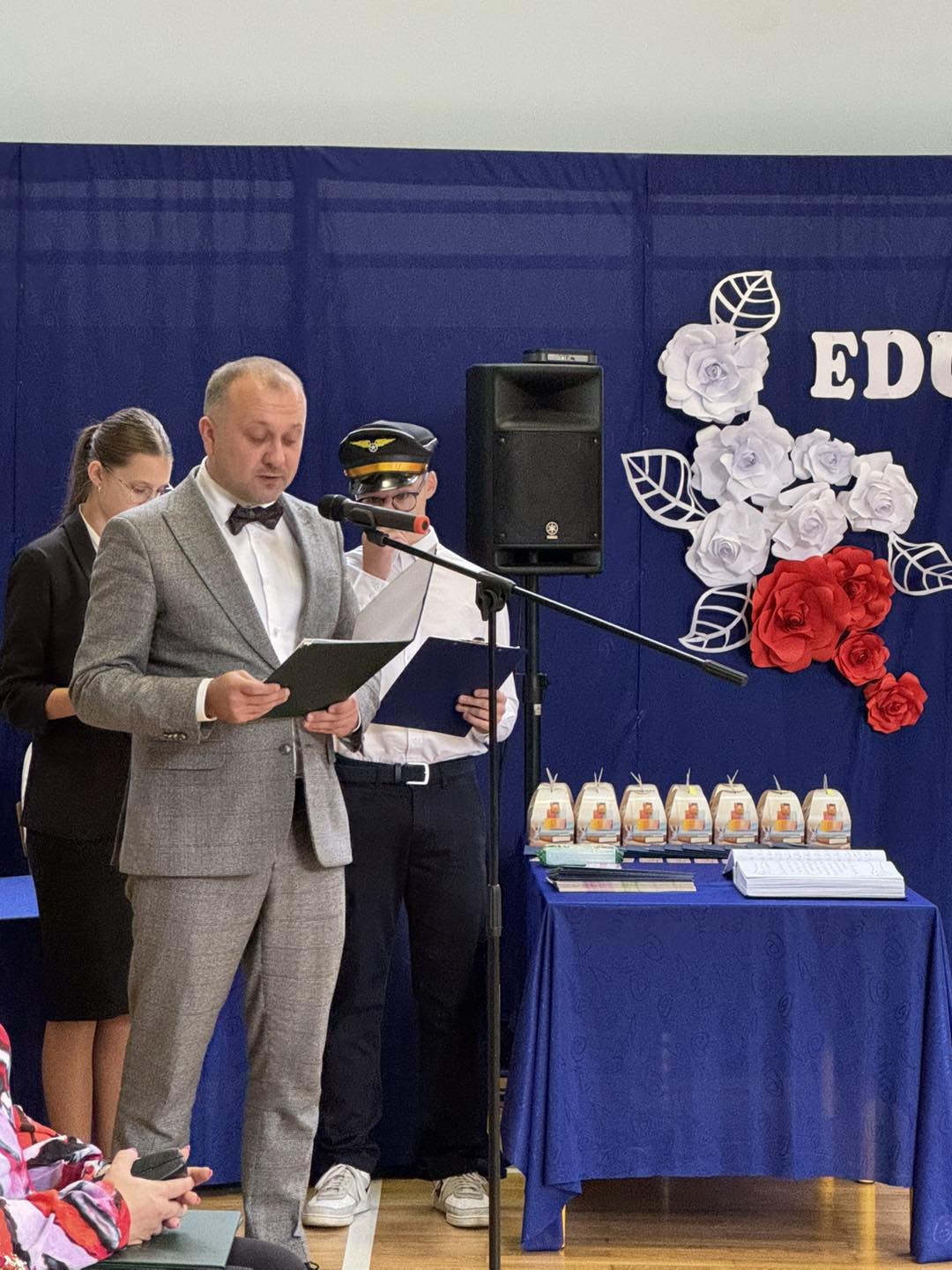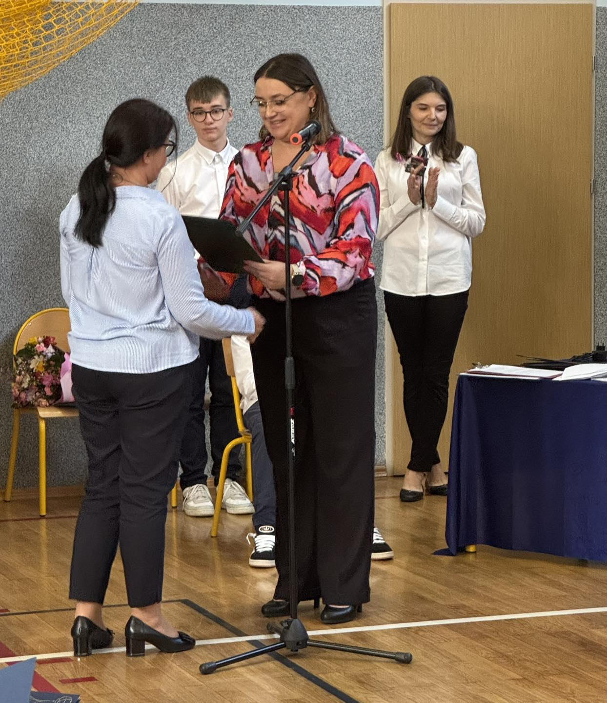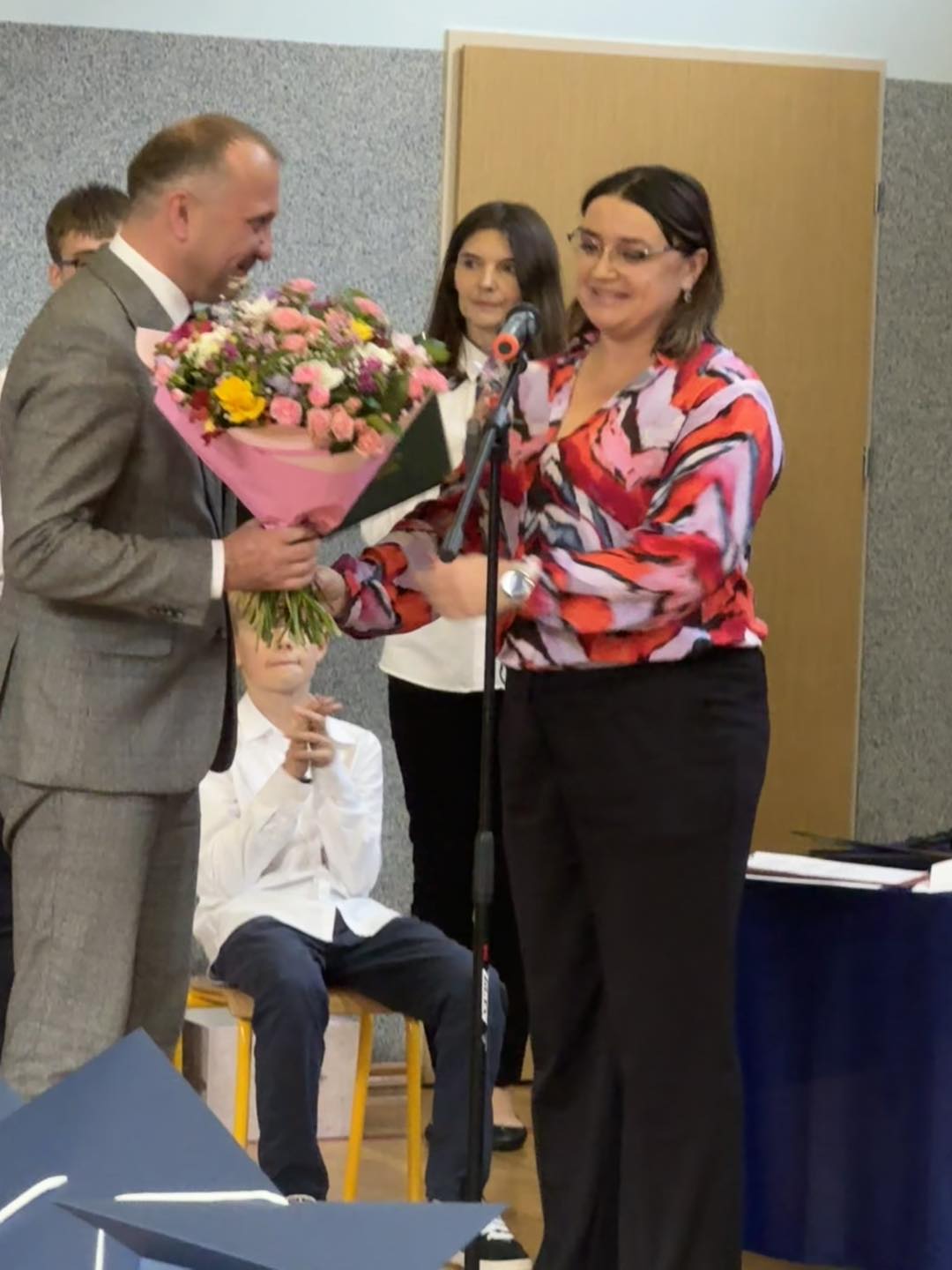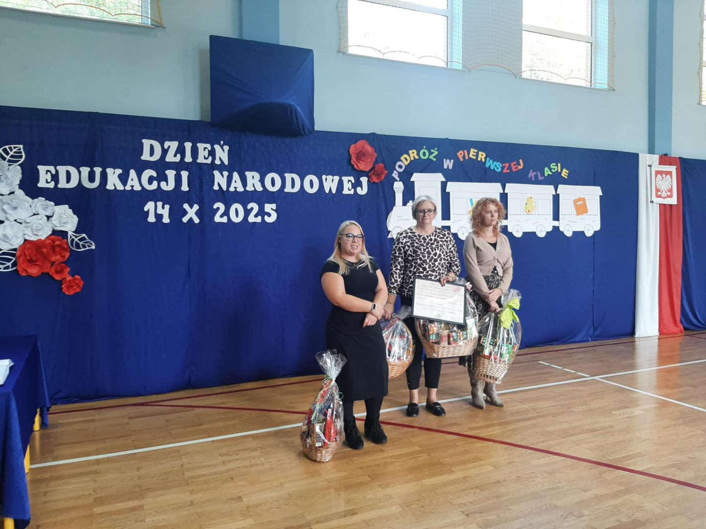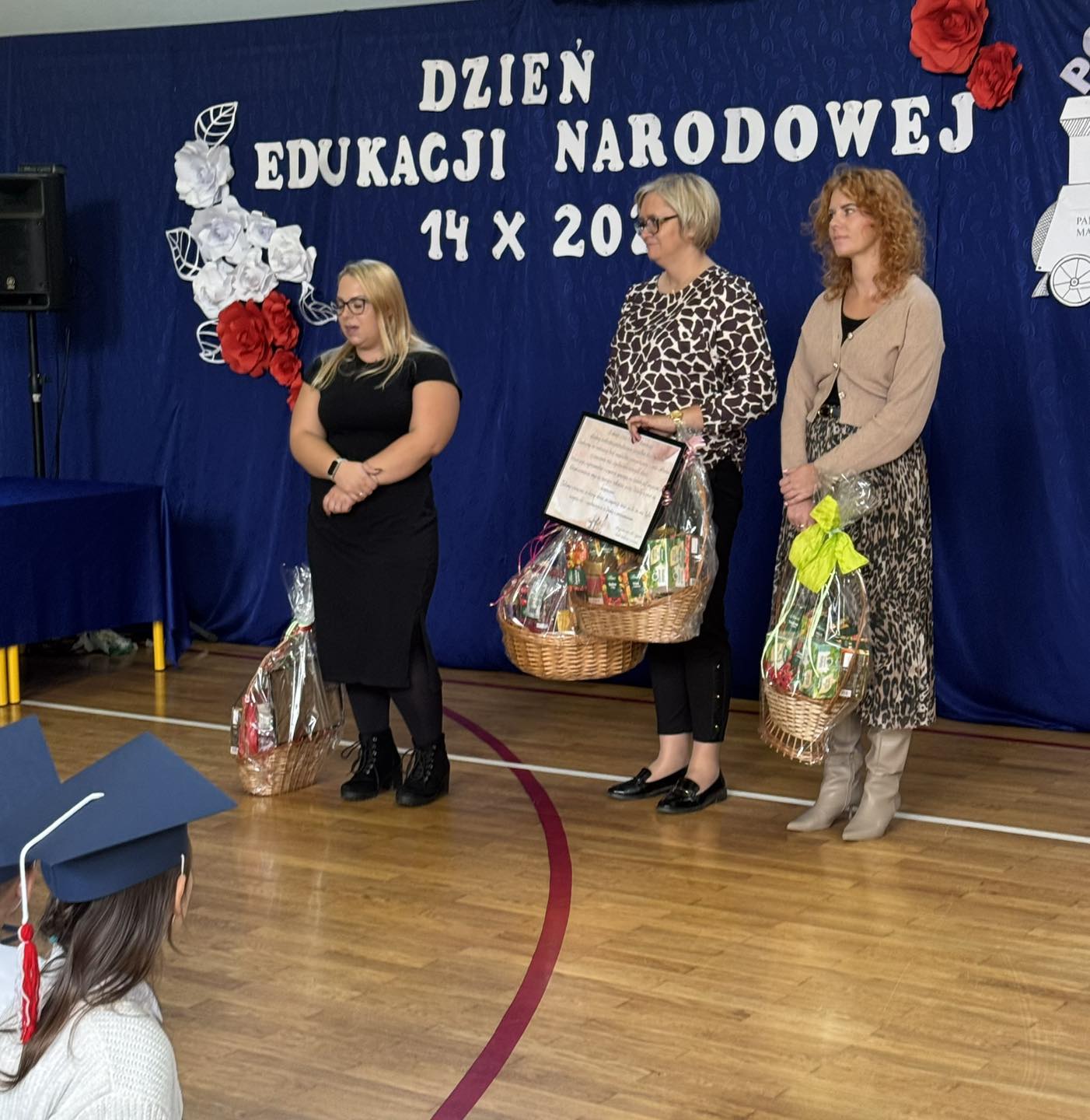 W związku z Dniem Edukacji Narodowej przedstawiciele Rady Samorządu Uczniowskiego złożyli życzenia nauczycielom oraz wszystkim pracownikom oświaty, a także wręczyli z tej okazji symboliczne upominki