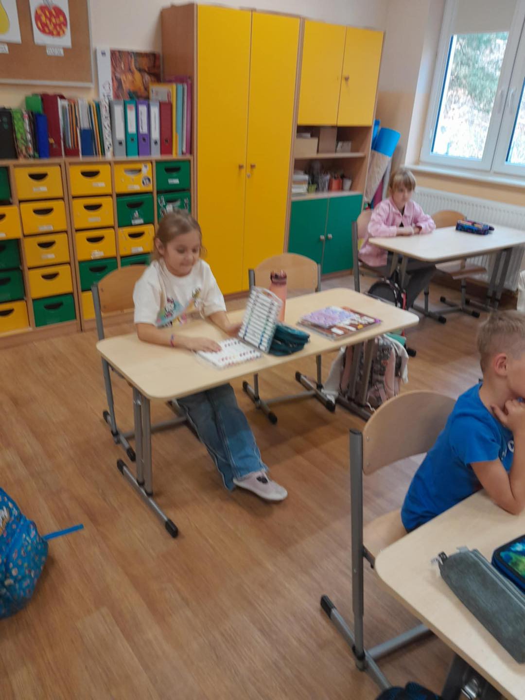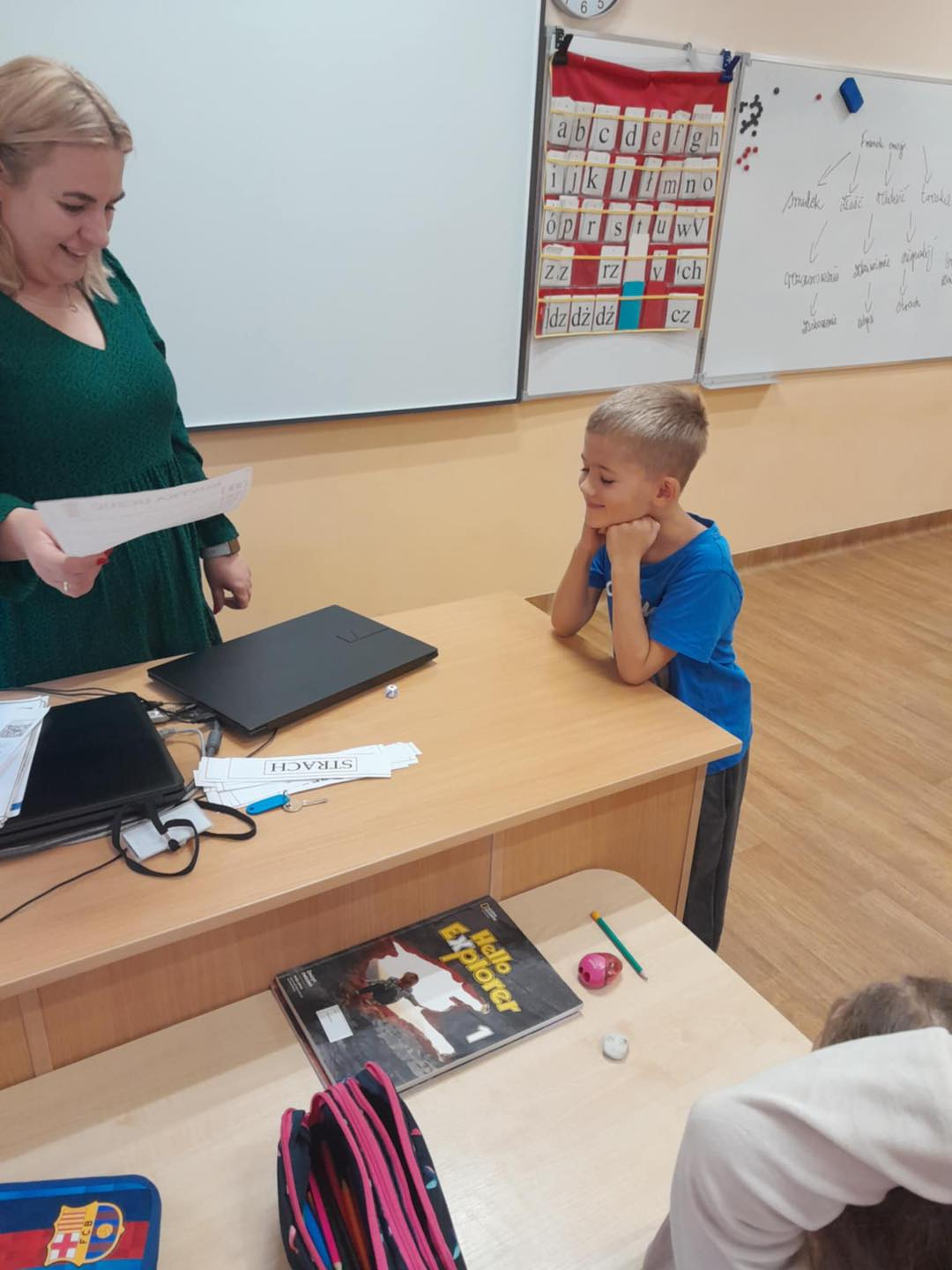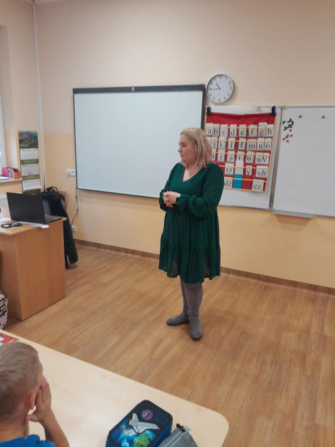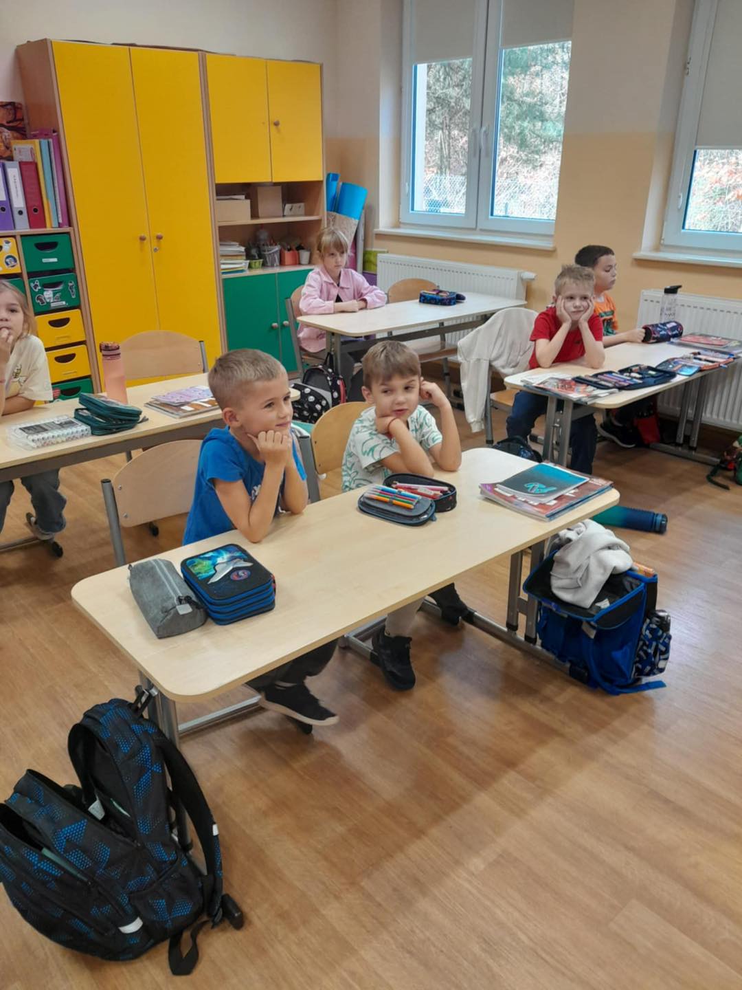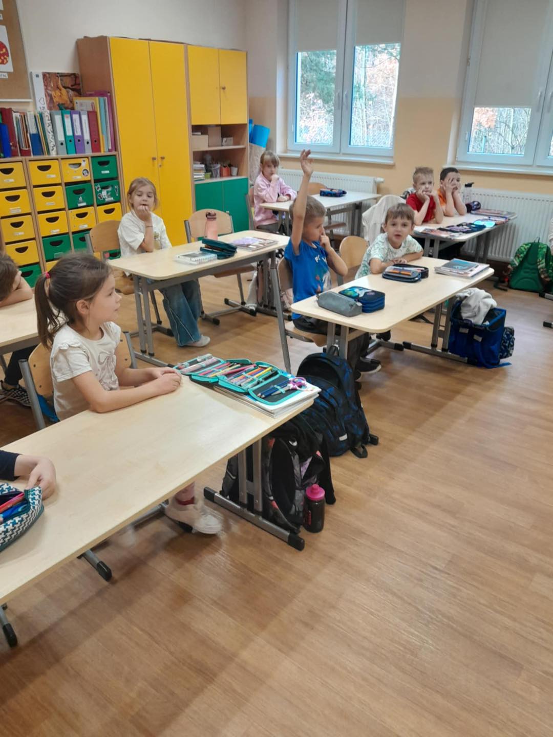 Podczas zajęć z panią pedagog, Wioletą Karabin uczniowie klasy 1 rozmawiali o emocjach – wspólnie wskazywali, jakie znają emocje i z czym im się one kojarzą. Dzieci podawały przykłady sytuacji, w których pojawiają się emocje pozytywne oraz negatywne.