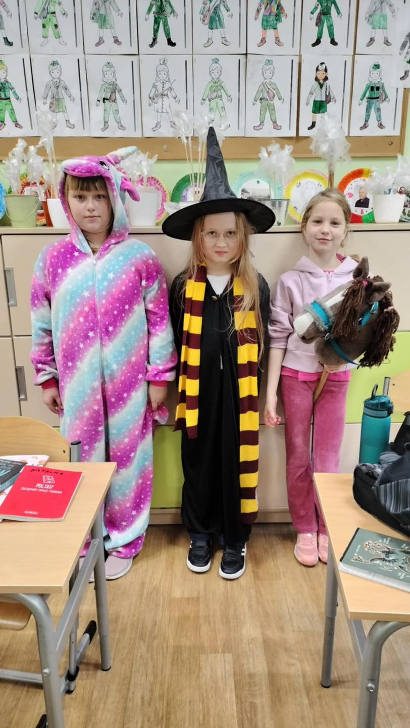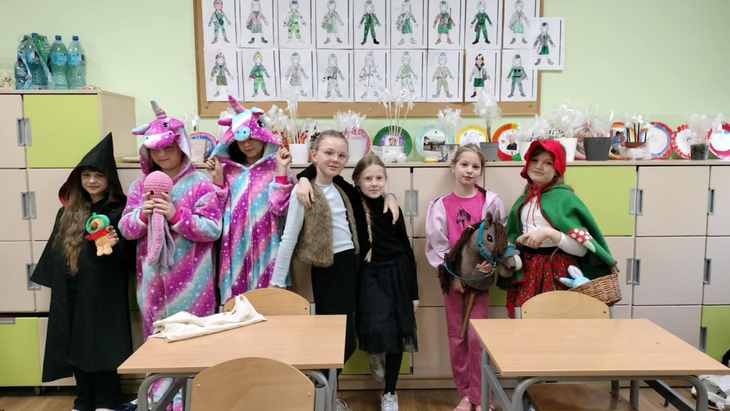Na korytarzach i w salach lekcyjnych było bardzo kolorowo, ponieważ dzieci przebrały się w stroje związane z ulubionymi bohaterami z książek i filmów