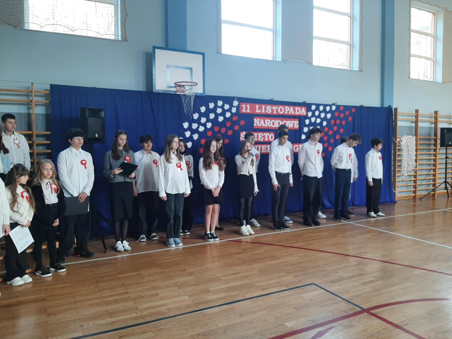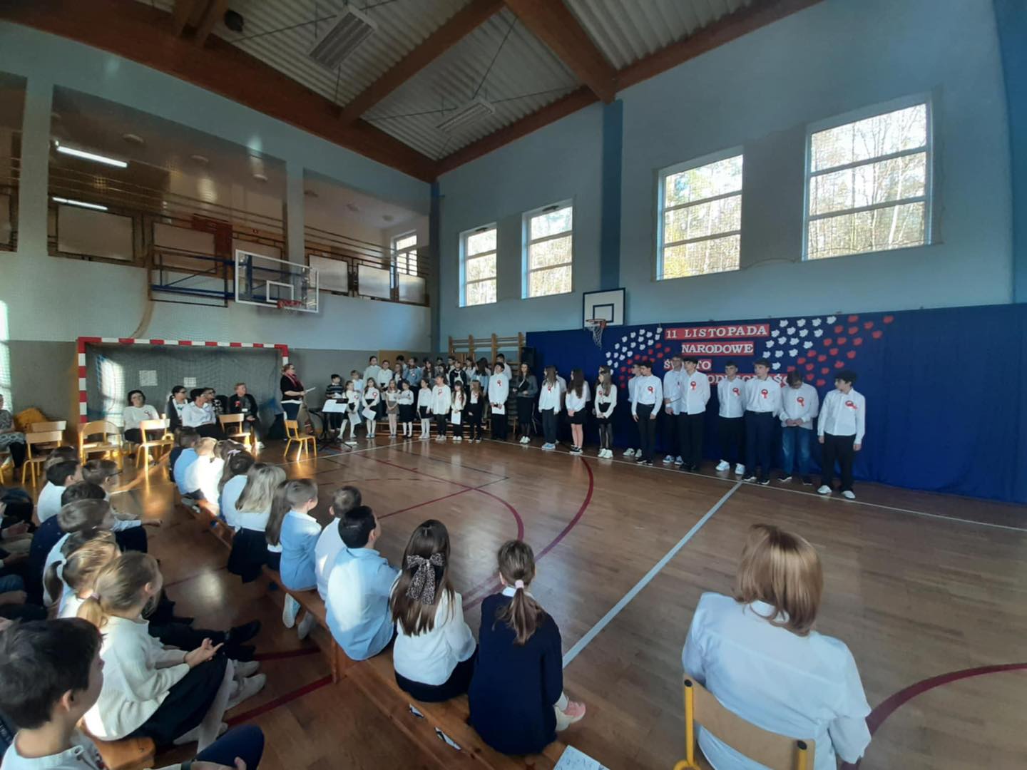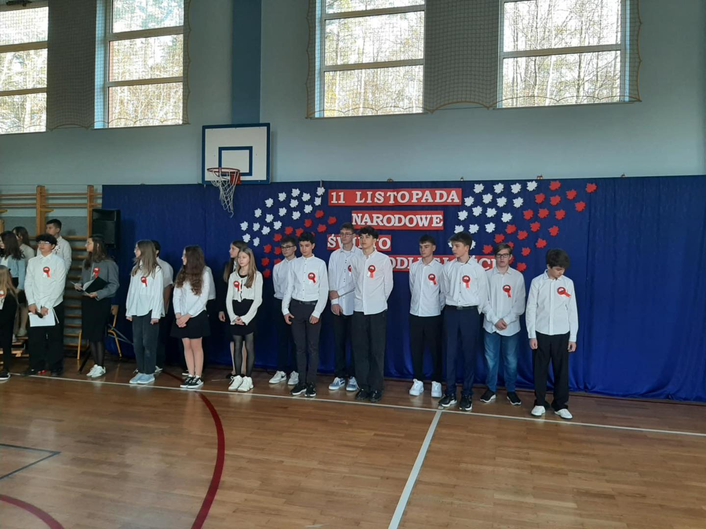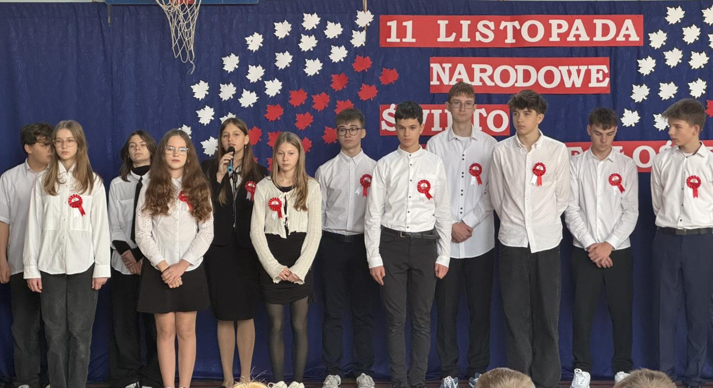 7 listopada 2025 r. wszyscy spotkaliśmy się w sali gimnastycznej, aby wspólnie przypomnieć sobie o ważnych wydarzeniach z historii naszego kraju.