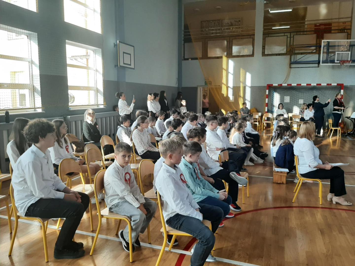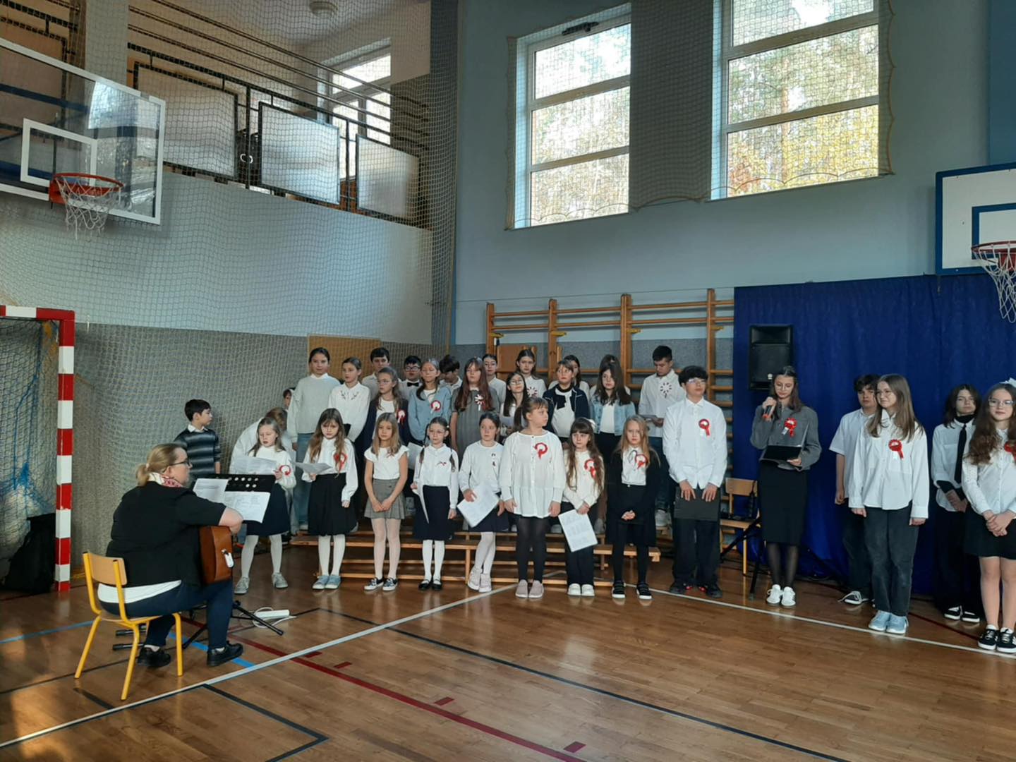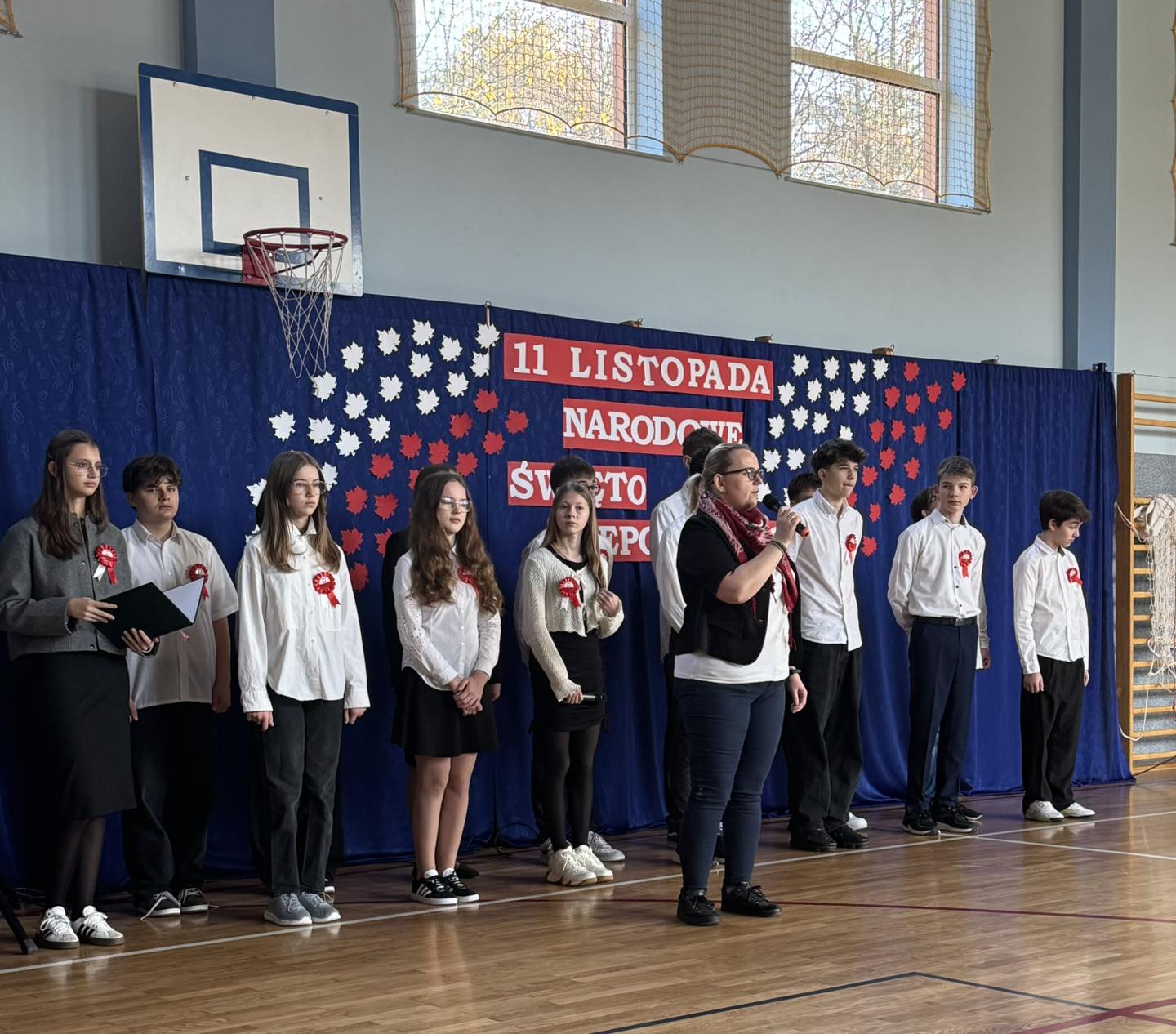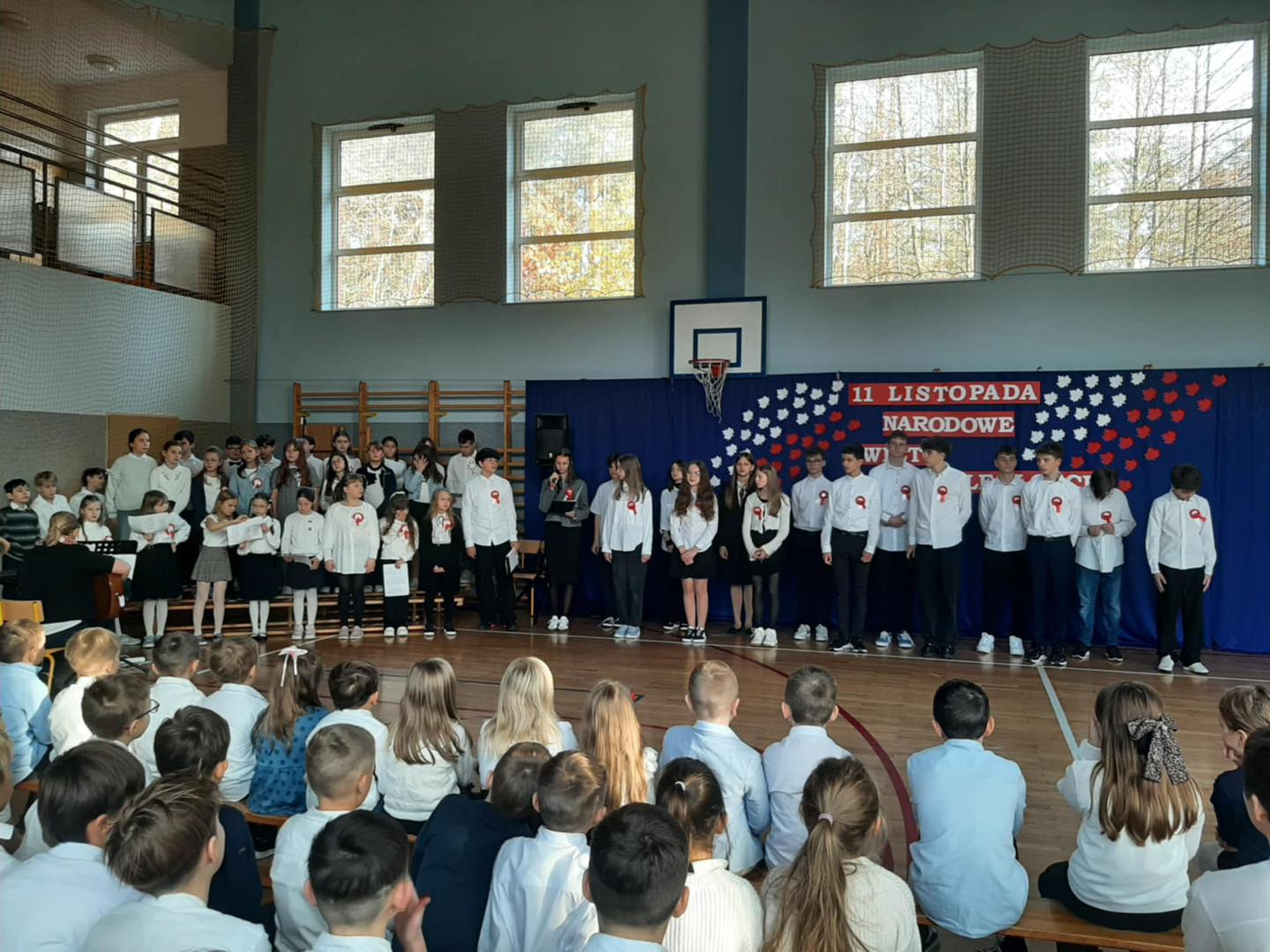 7 listopada 2025 r. wszyscy spotkaliśmy się w sali gimnastycznej, aby wspólnie przypomnieć sobie o ważnych wydarzeniach z historii naszego kraju.