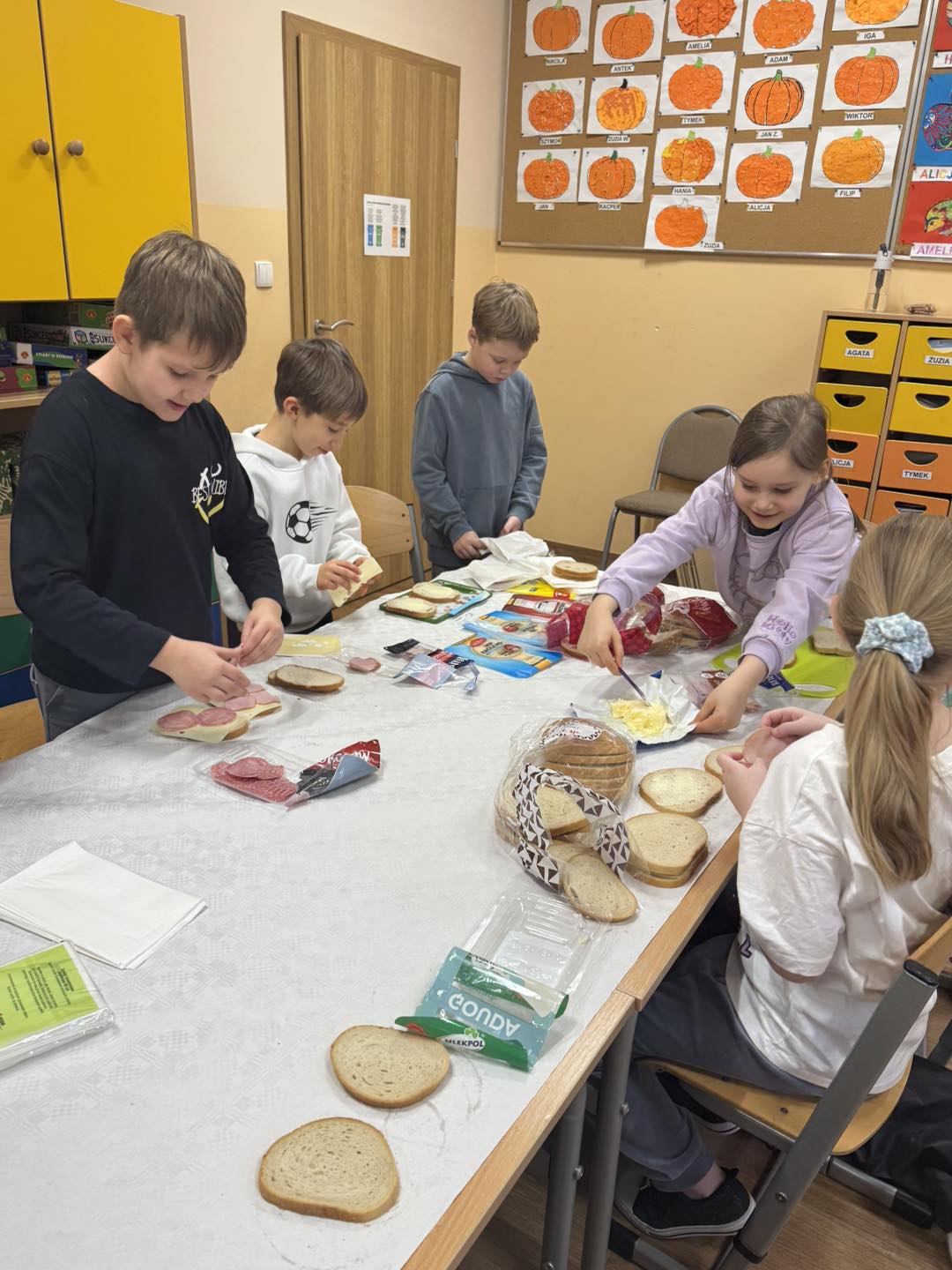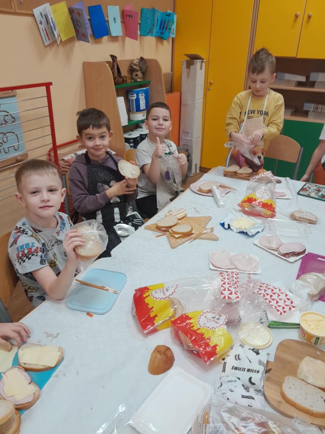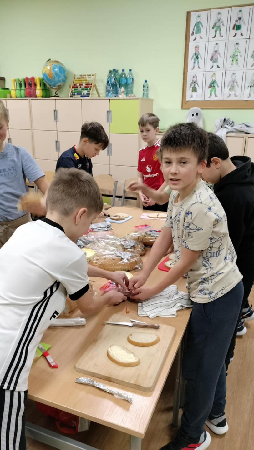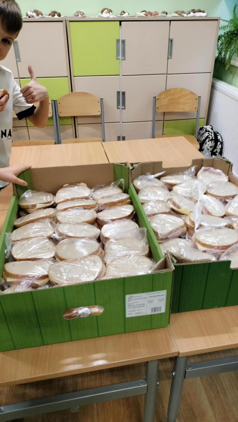 W ramach zadania uczniowie z wielkim zaangażowaniem przygotowywali i pakowali kanapki na rzecz ludzi doświadczających kryzysu bezdomności.