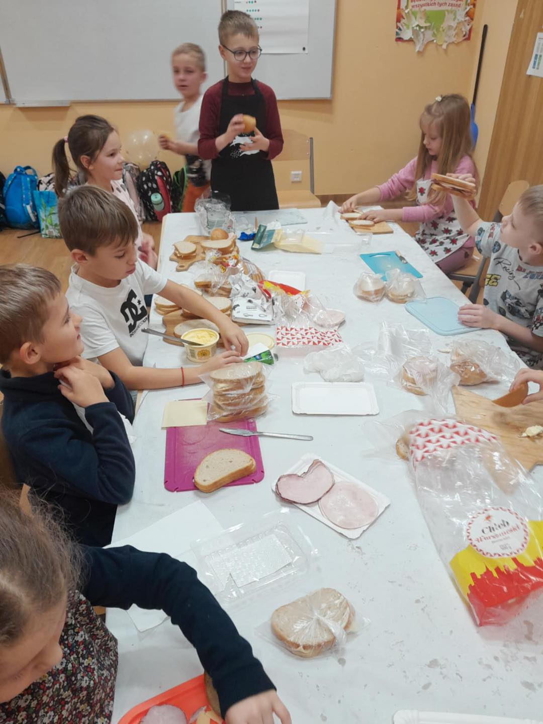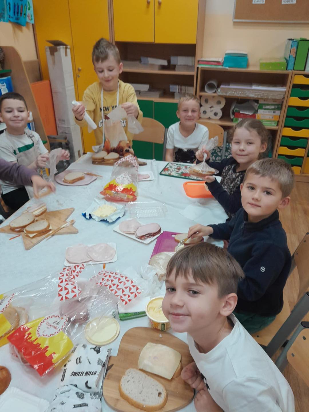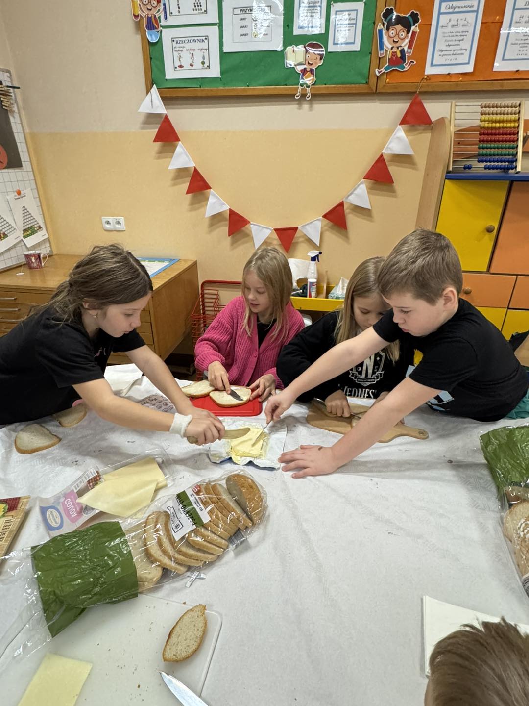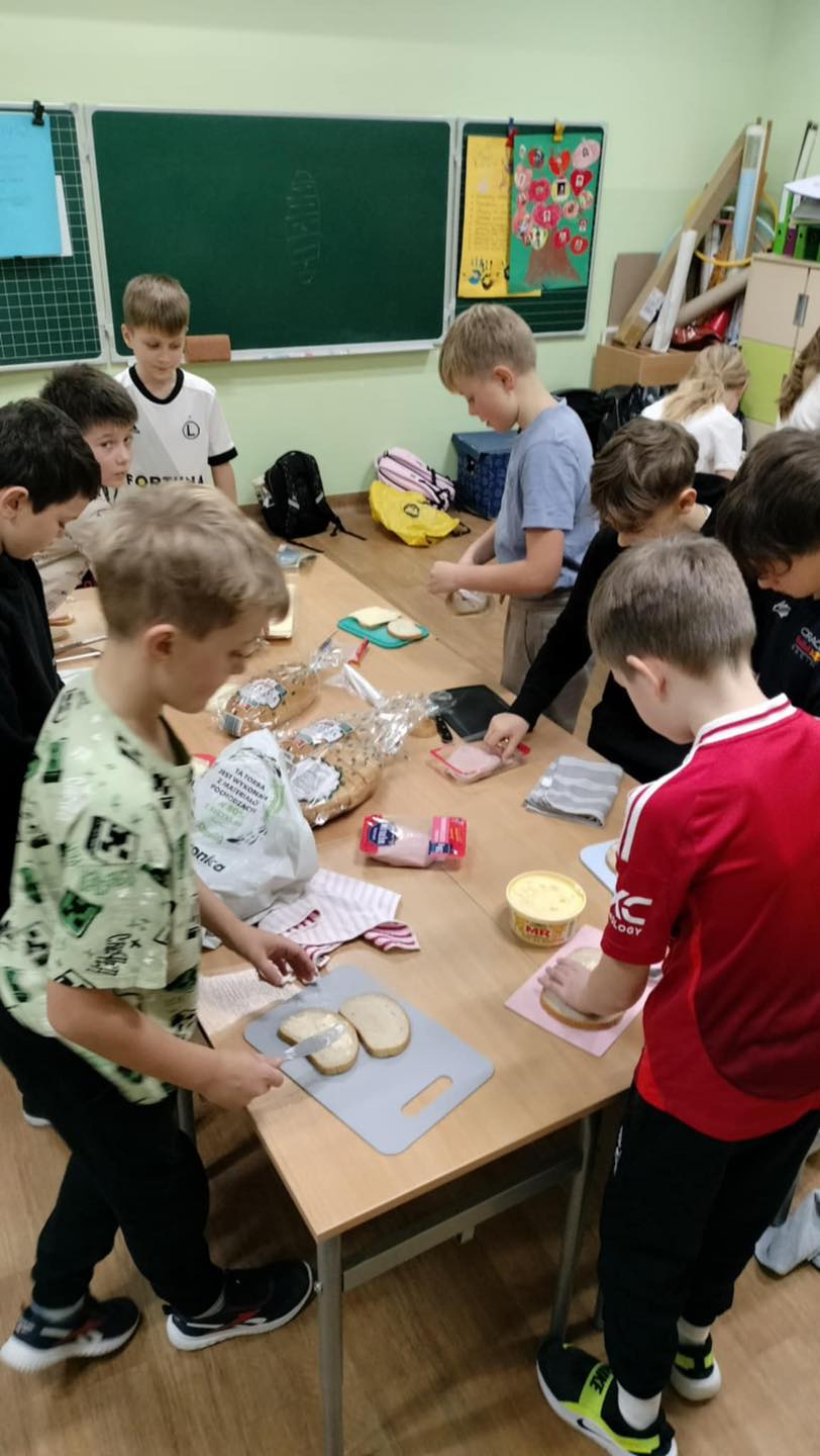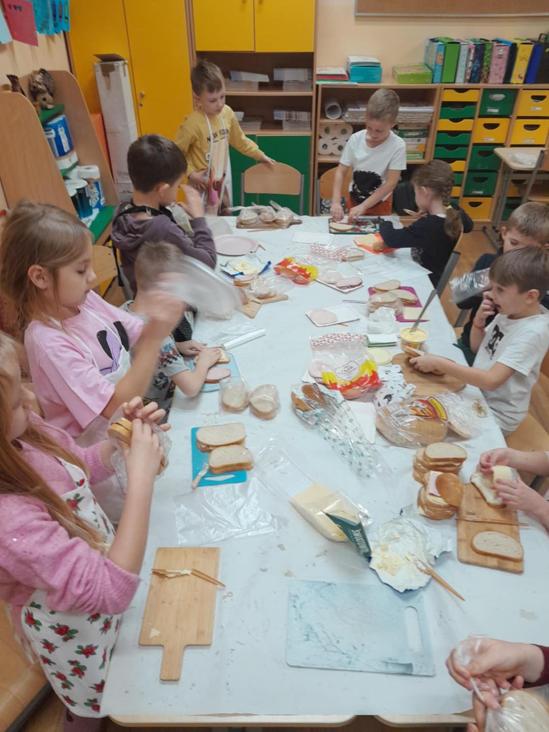 W ramach zadania uczniowie z wielkim zaangażowaniem przygotowywali i pakowali kanapki na rzecz ludzi doświadczających kryzysu bezdomności.