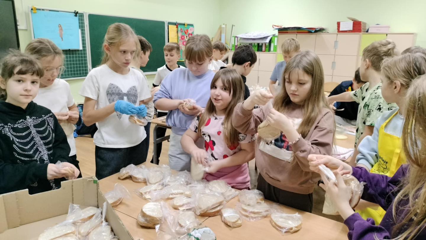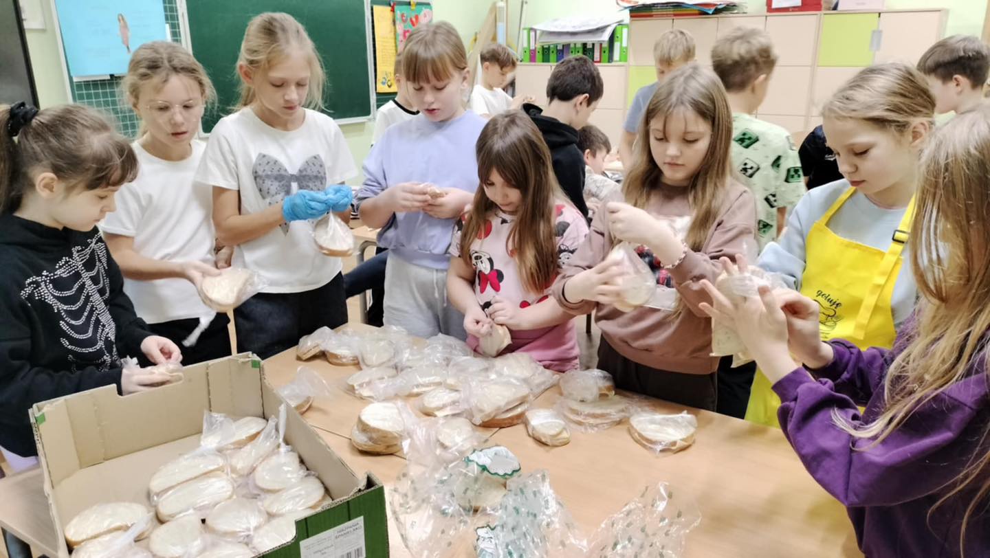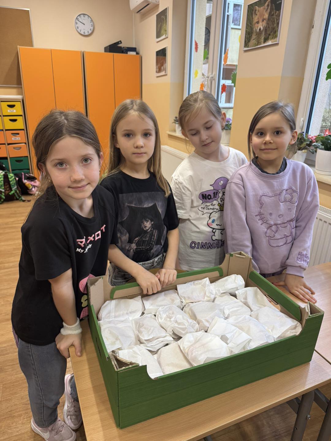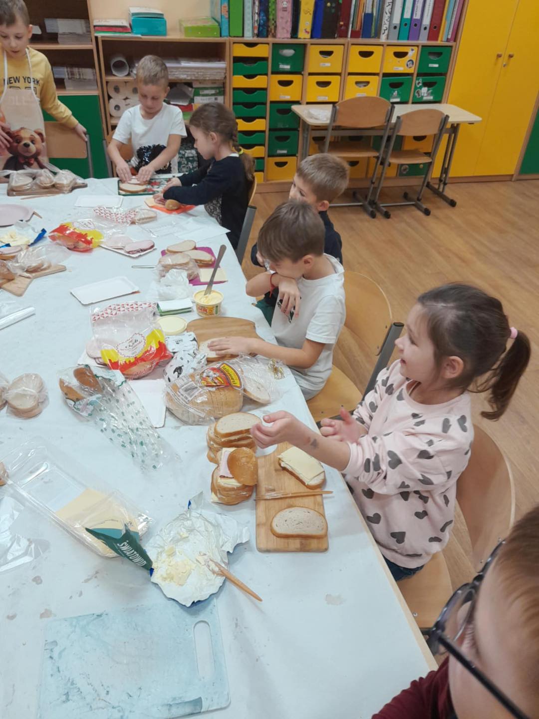 W ramach zadania uczniowie z wielkim zaangażowaniem przygotowywali i pakowali kanapki na rzecz ludzi doświadczających kryzysu bezdomności.