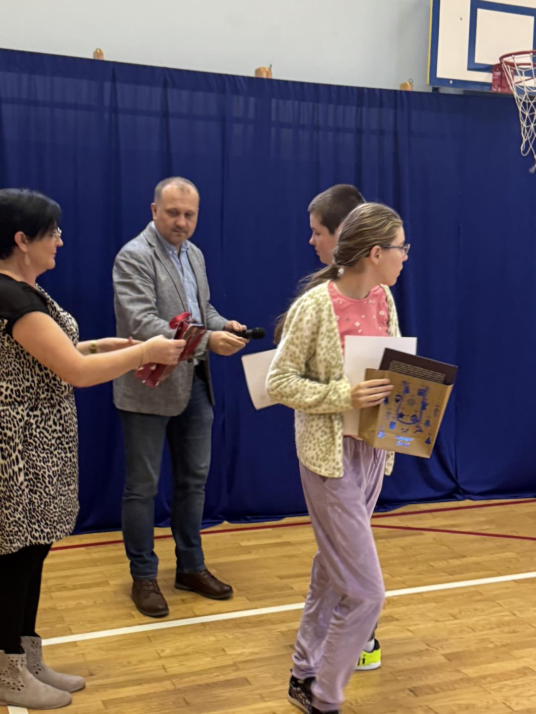 4 grudnia 2025 r. zostały również wręczone uczniom dyplomy i nagrody za udział w konkursie „Legendy i baśnie o polskich miastach” oraz „Mój ulubiony bohater z książki” zorganizowane przez bibliotekę szkolną "Narodowy Program Rozwoju Czytelnictwa".